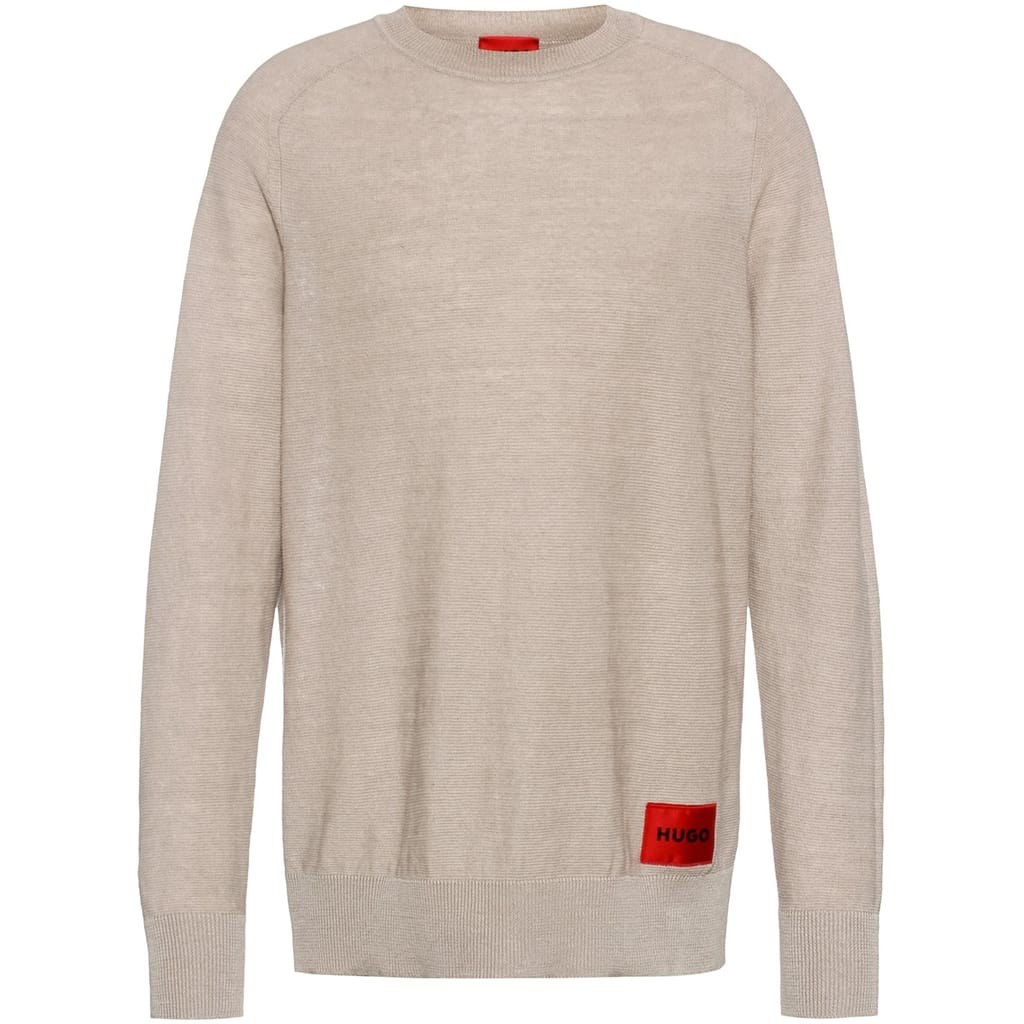 This Hugo top features a classic crew neck and long sleeves, offering a regular fit for everyday comfort. The solid pattern is complemented by a subtle logo embellishment, adding a touch of brand identity. Ribbed cuffs enhance the overall design, making it a versatile addition to any wardrobe. -