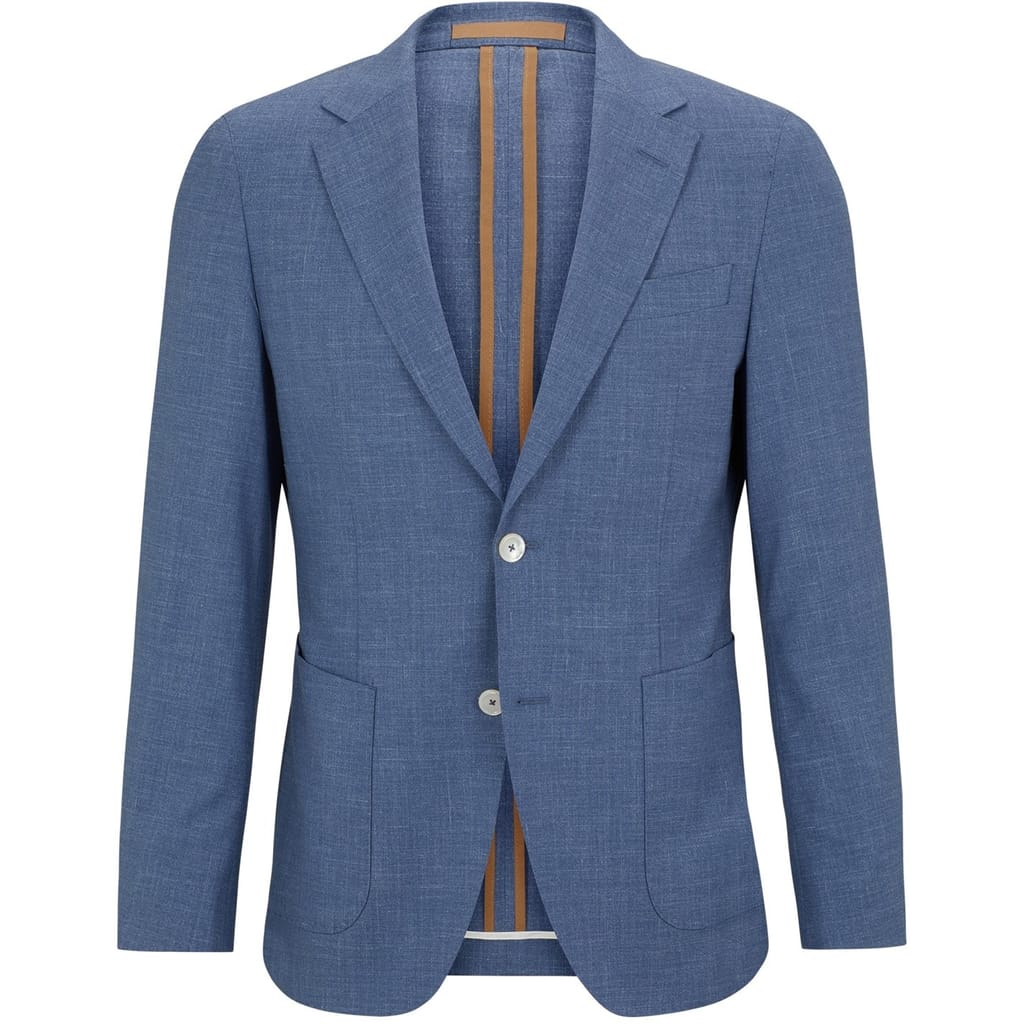 This Boss blazer from the workwear collection is a sophisticated choice for professional settings. Featuring a notch collar and a button closure, it offers a regular fit with a straight hem. The solid pattern and pocket embellishments add to its classic appeal, making it a versatile addition to any wardrobe. -