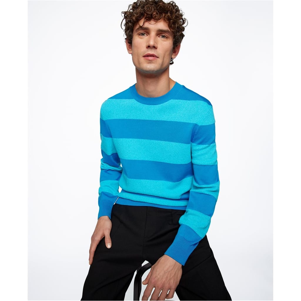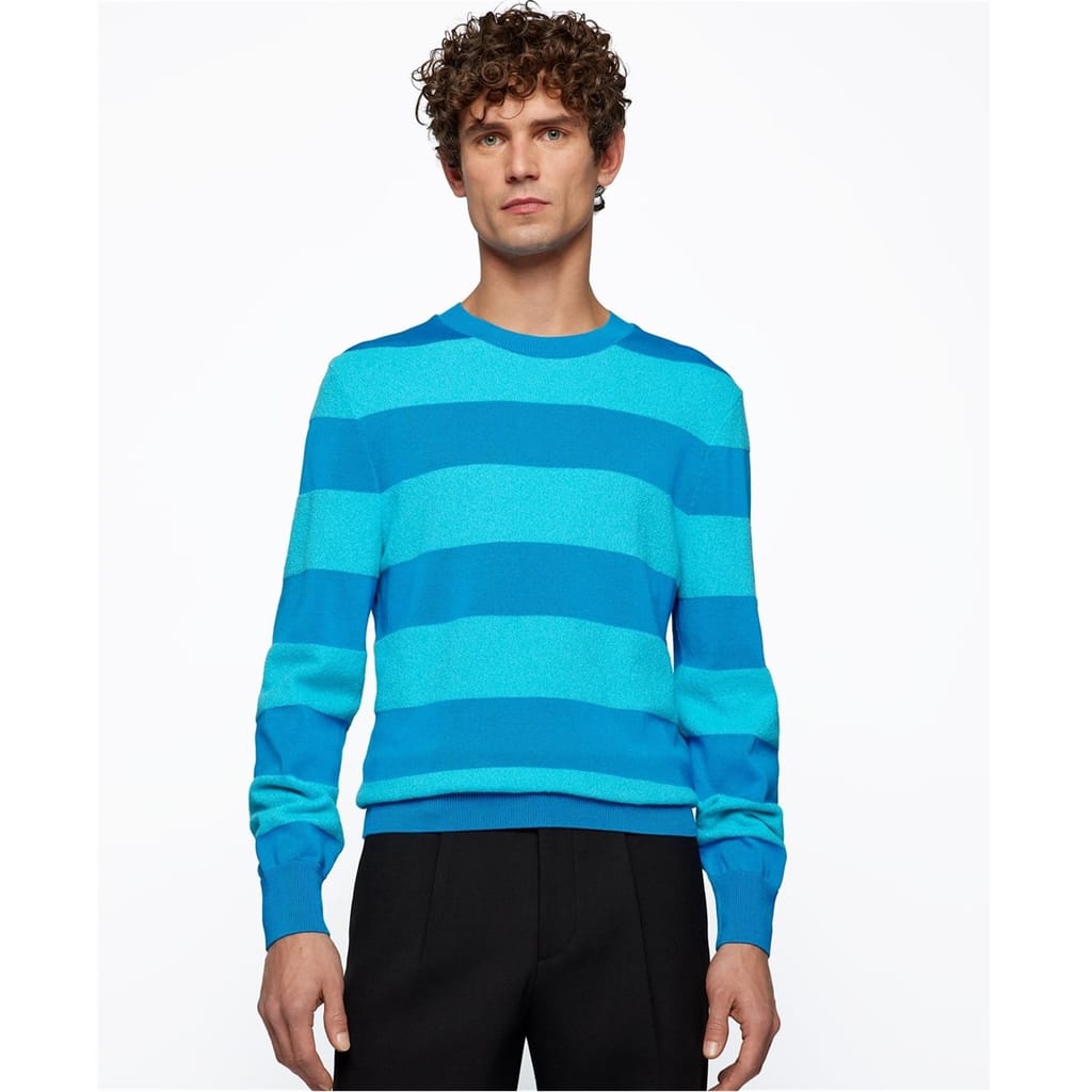 This Boss top features a classic crew neck and long sleeves with ribbed cuffs. The regular fit ensures comfort, while the horizontal stripe pattern adds a touch of style. A subtle logo embellishment completes the design, making it a versatile addition to your wardrobe. -