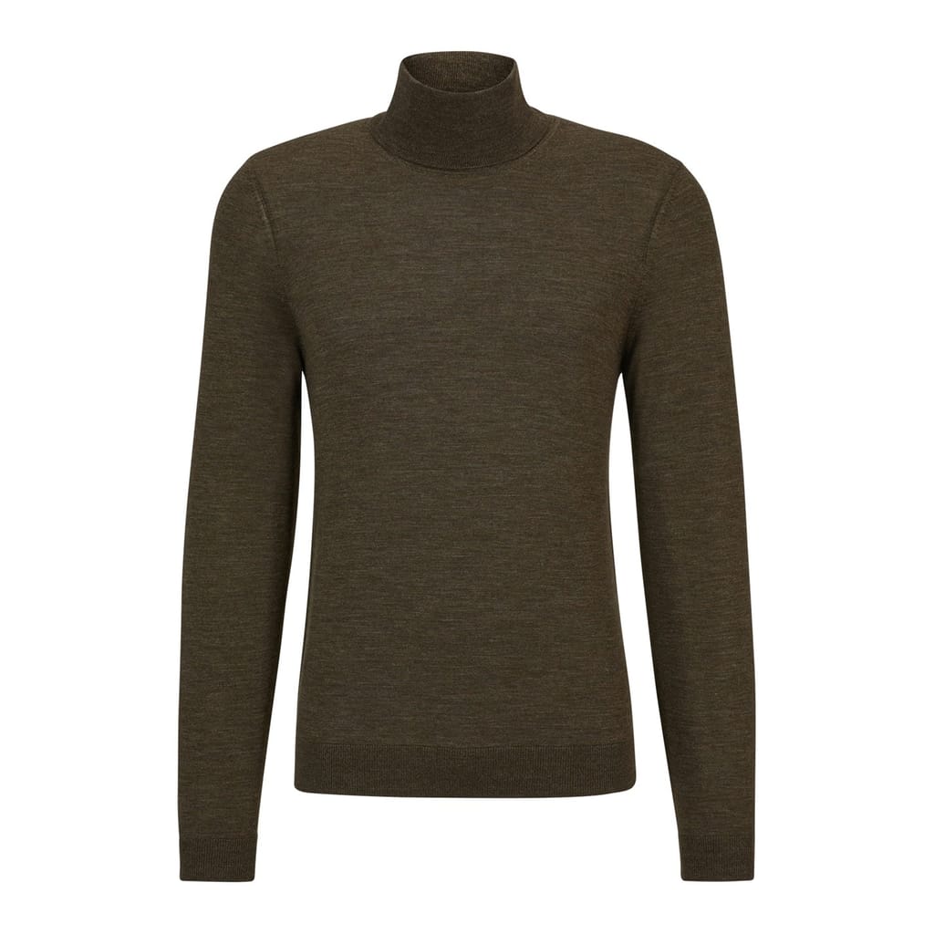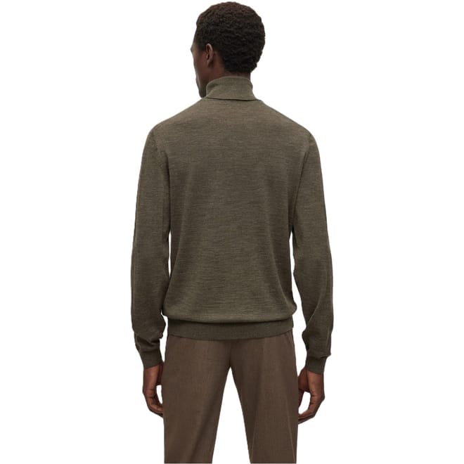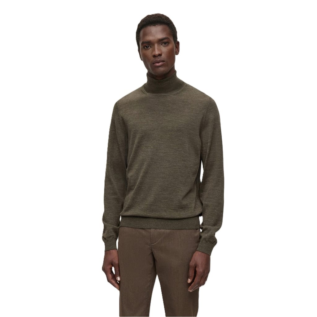 This Boss top features a turtle neck and long sleeves, offering a regular fit. The solid pattern adds a classic touch, while the ribbed cuffs provide a refined finish. -