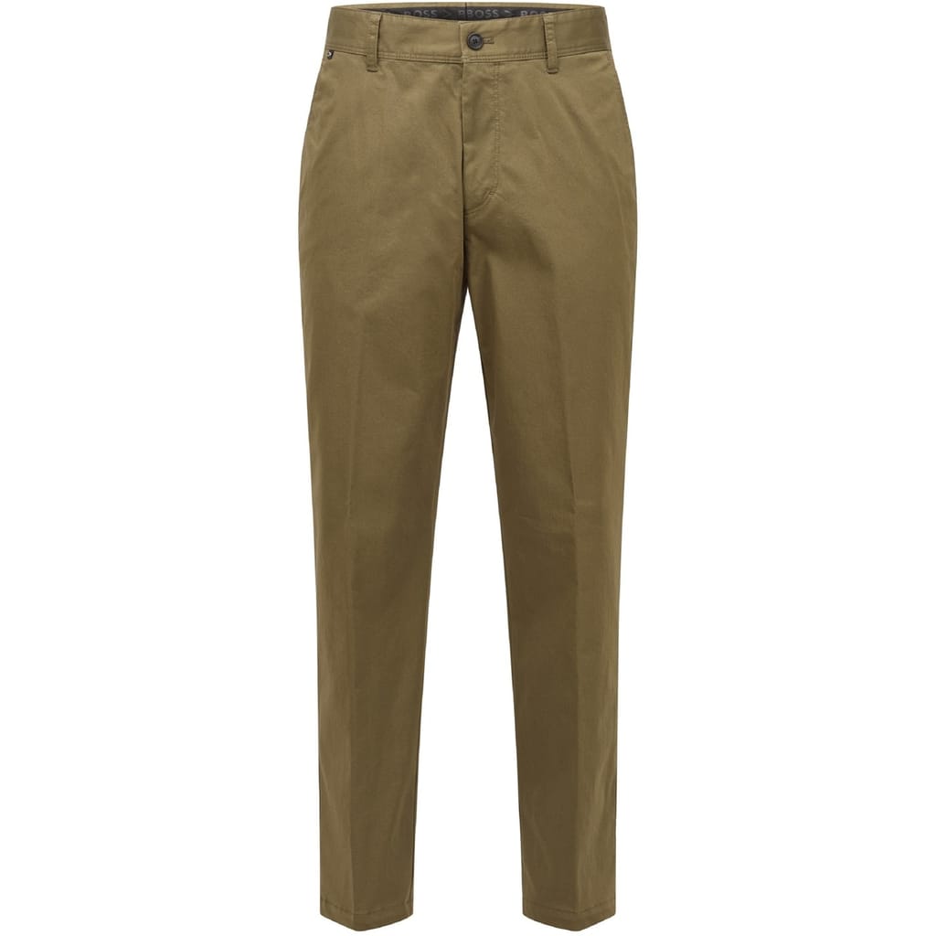 Discover Boss chinos, featuring a regular fit and a zip fly with button closure. These chinos are adorned with a subtle logo embellishment, offering a refined touch to your wardrobe essentials. -