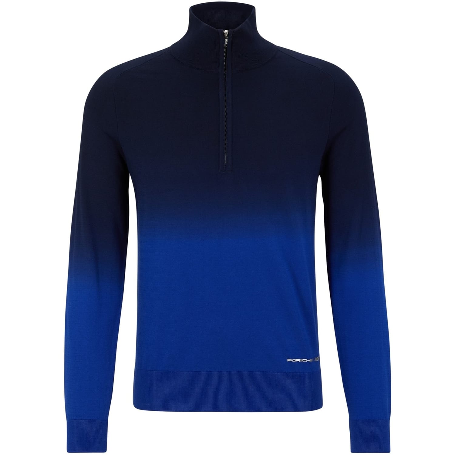 This Boss top features a gradient pattern and a funnel neck with a zipper closure. Designed with long sleeves and ribbed cuffs, it offers a regular fit for comfortable wear. -