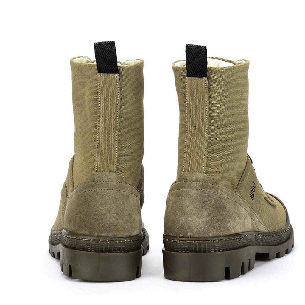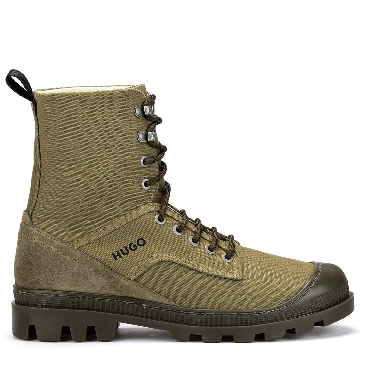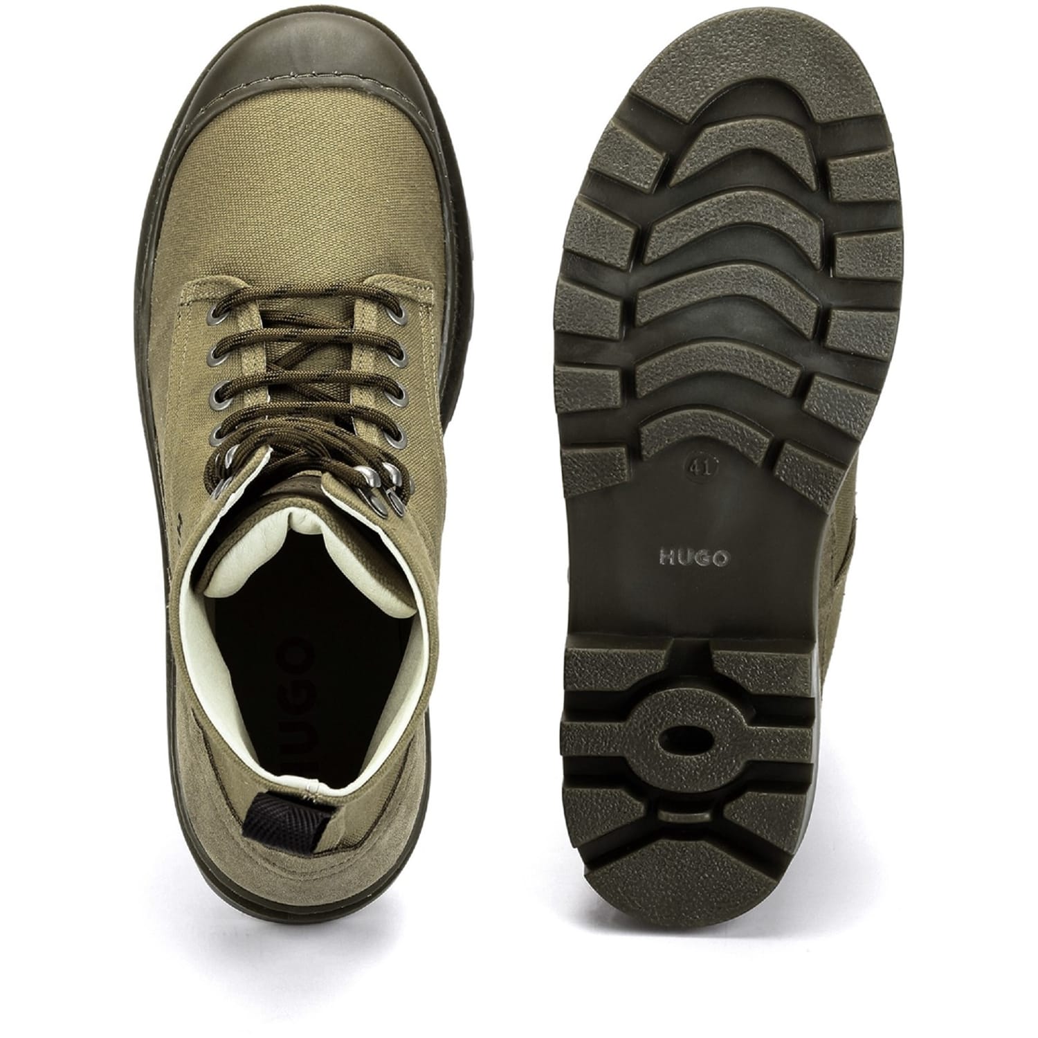 Step into style with Hugo combat boots, a perfect blend of functionality and fashion. These shoes feature a distinctive capped toe design, offering both durability and a modern edge. The wordmark graphic adds a subtle touch of branding, making these boots a versatile addition to any wardrobe. -