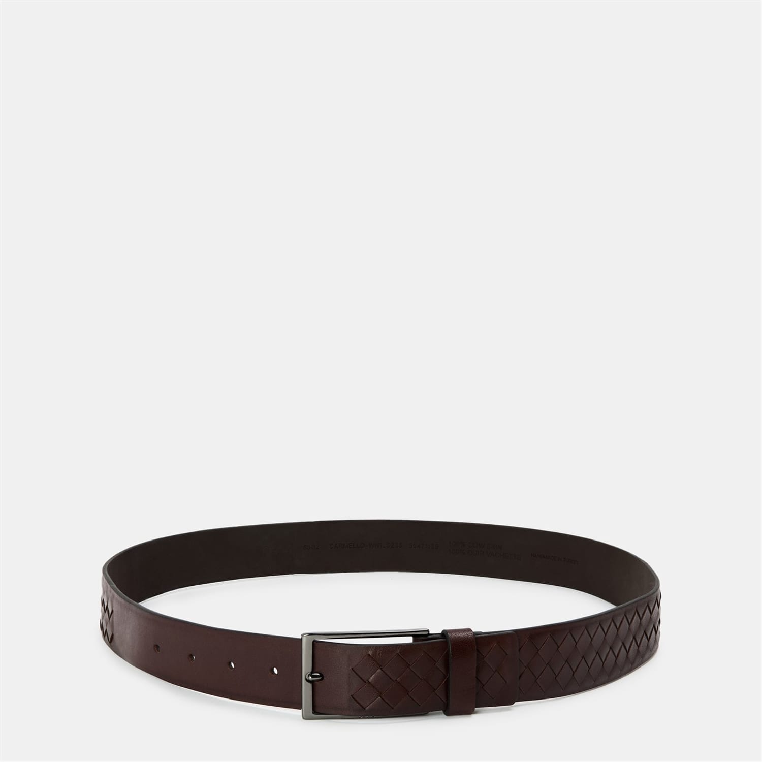 Elevate your wardrobe with the Boss leather belt, featuring a sophisticated basket weave pattern. This braided design is complemented by a sleek metal buckle, making it a versatile choice for both dress and casual occasions. Crafted with attention to detail, this belt seamlessly combines style and functionality, ensuring it becomes a staple in your accessory collection. -