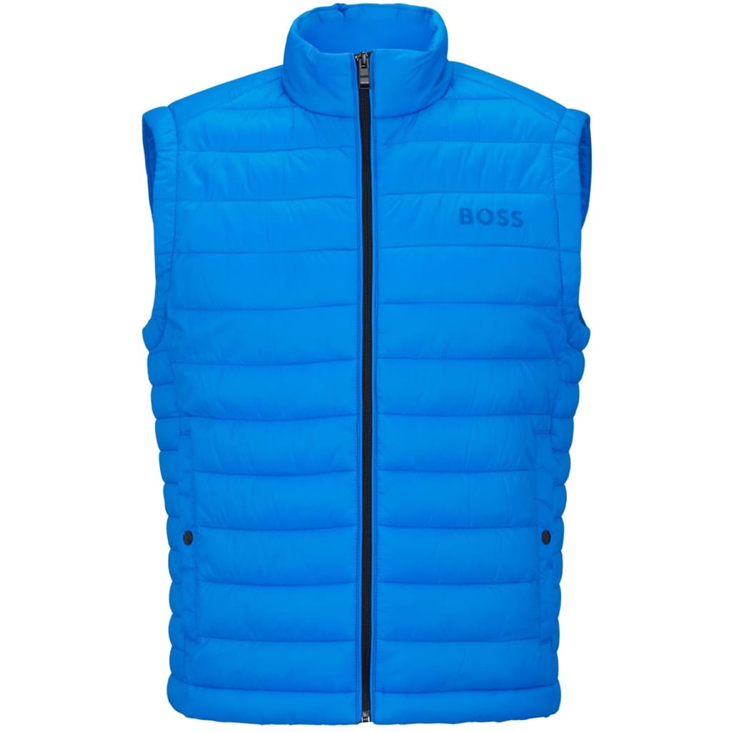 This Boss gilet features a solid pattern with a regular fit, offering a sleek and modern look. The straight hem and zipper closure provide a clean finish, while the logo embellishment adds a touch of brand identity. Ideal for layering, this sleeveless design is a versatile addition to any wardrobe. -
