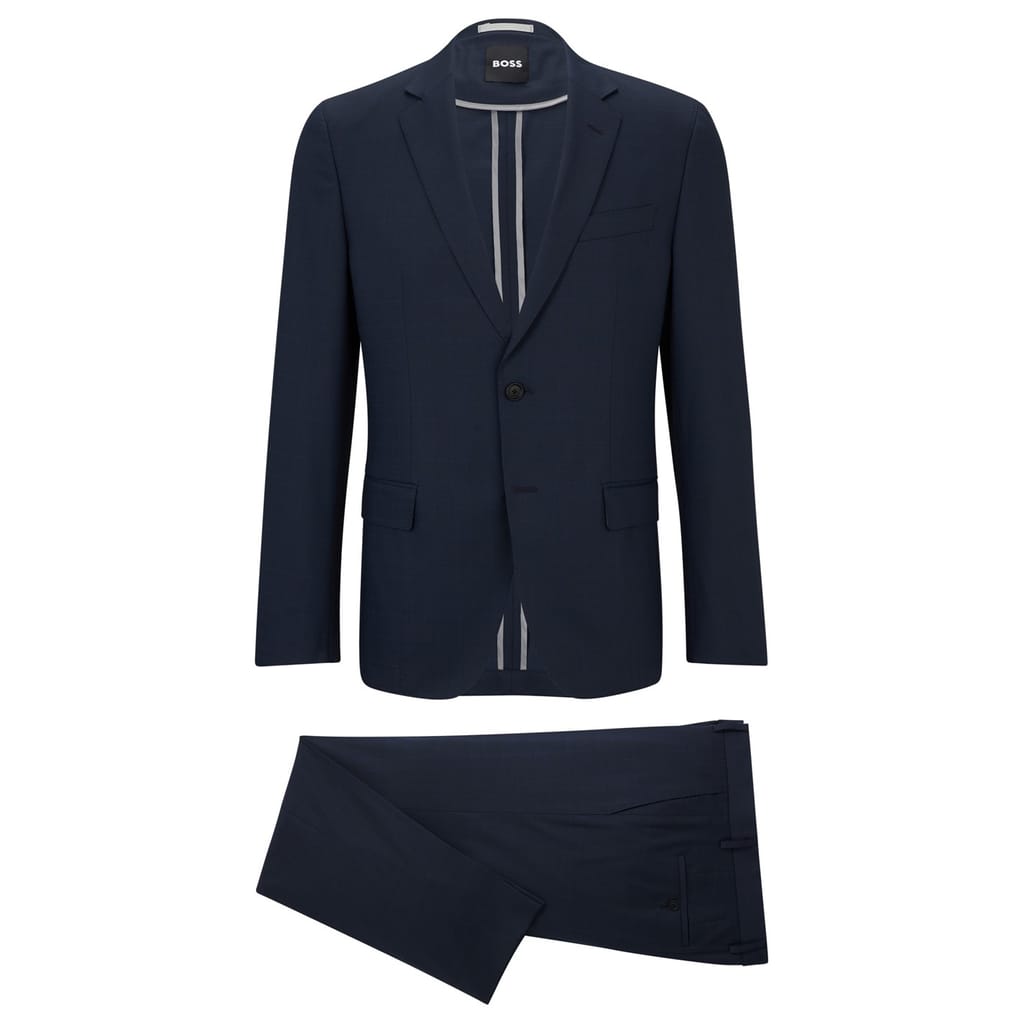 This Boss suit jacket from the formal collection features a notch collar and a straight hem. Crafted with a regular fit, it offers a solid pattern and button closure. The jacket is adorned with a subtle logo embellishment, adding a touch of sophistication to its design. -