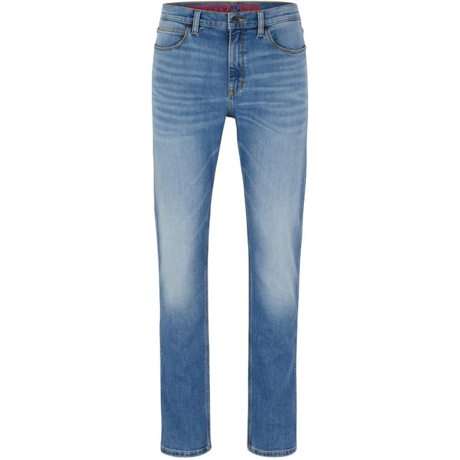 Discover the Hugo five-pocket design jeans, featuring a slim fit for a modern silhouette. These jeans come with a zip fly and button closure, ensuring a secure fit. The subtle logo embellishment adds a touch of brand identity, making these jeans a stylish addition to your wardrobe. -