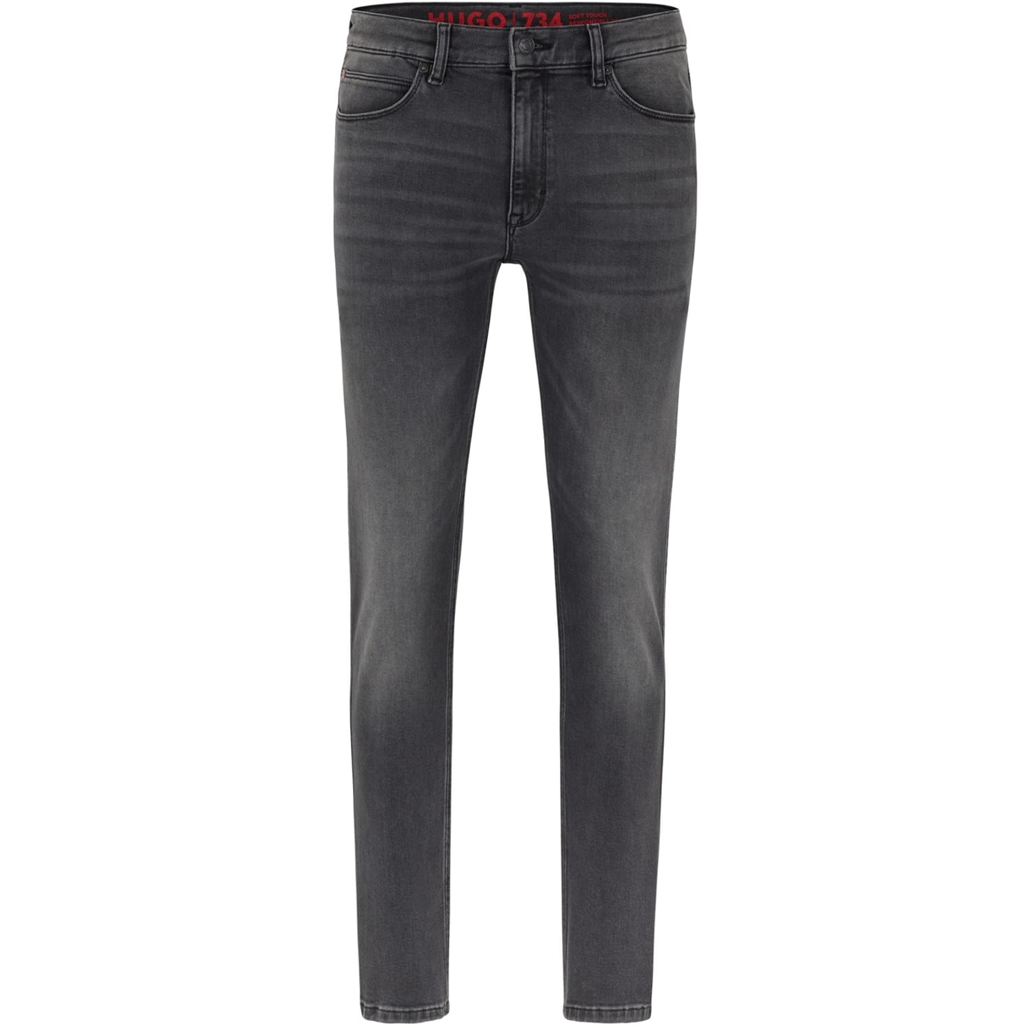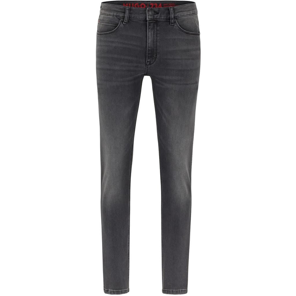 Hugo jeans feature a straight fit with a classic five-pocket design. The wash pattern adds a stylish touch, while the zip fly, front button, and belt loops ensure a secure fit. Embellished with front, back, and coin pockets, these jeans offer both functionality and style. Detailed stitching enhances the overall look, making them a versatile addition to any wardrobe. -