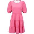 This Hugo midi tiered dress features a scoop neckline and three-quarter puff sleeves, offering a stylish and elegant look. The solid pattern enhances its classic appeal, while the ruffle hem adds a touch of femininity. Designed with a tie-back closure, this dress ensures a comfortable regular fit, making it a versatile addition to any wardrobe. -