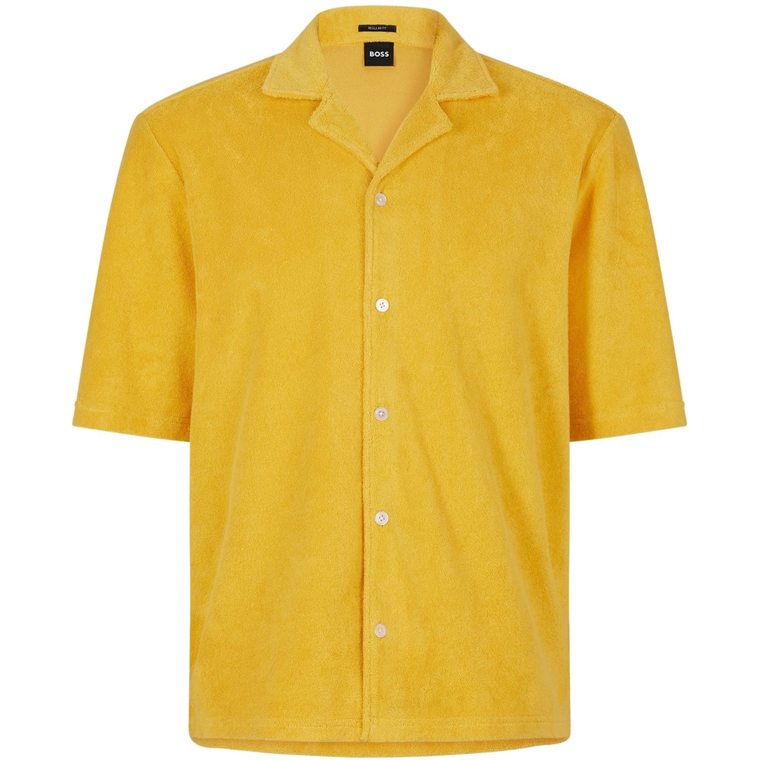 This Boss top is a casual essential, featuring a solid pattern and a shirt collar. Designed with short sleeves and a regular fit, it offers a comfortable and stylish look. The button closure adds a classic touch, while the logo embellishment subtly showcases the brand's identity. -