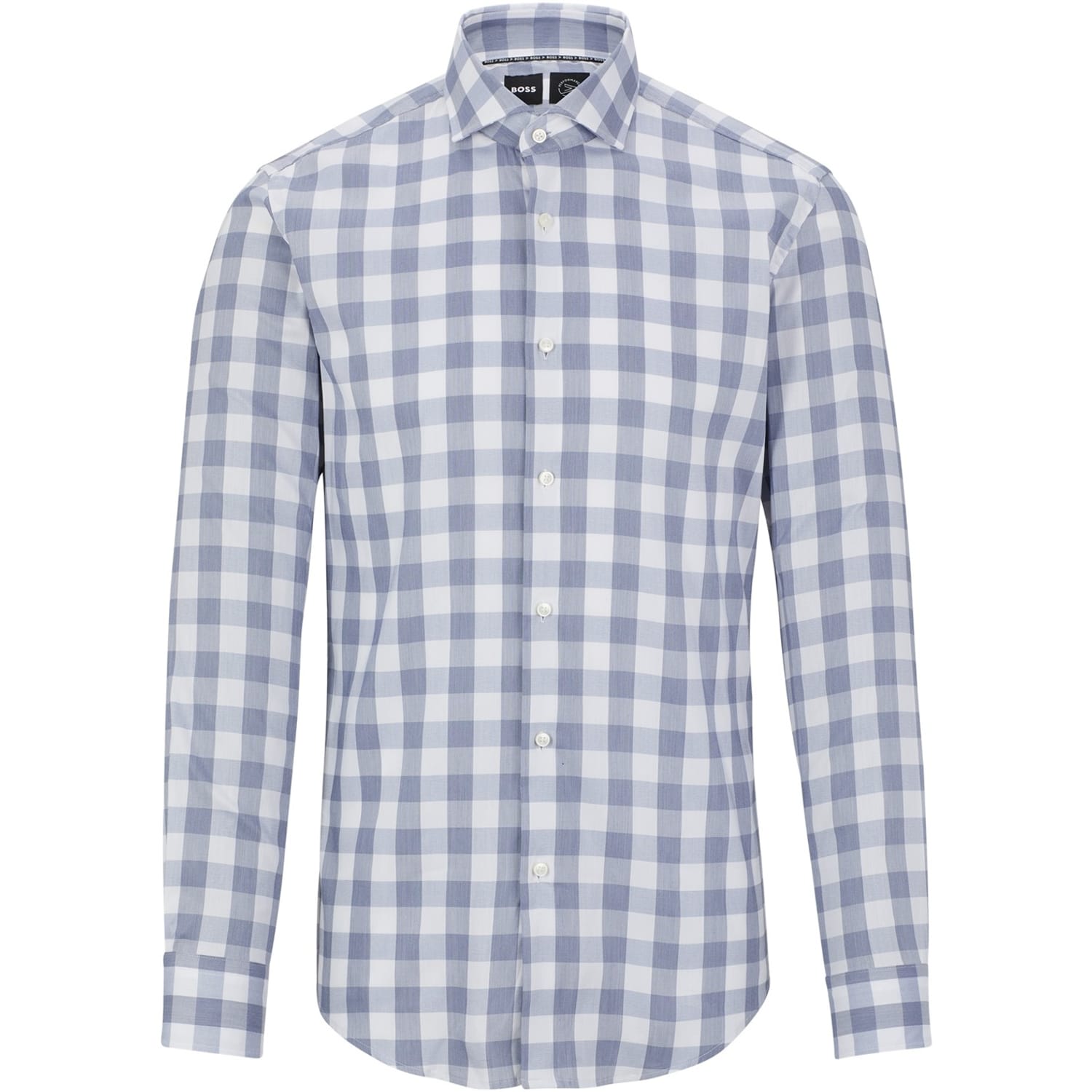 This Boss top is a sophisticated choice for formal occasions. Crafted in a slim fit, it features a gingham pattern and long shirt sleeves with barrel cuffs. The spread collar and button closure add a classic touch, while the logo embellishment subtly highlights the brand's identity. -