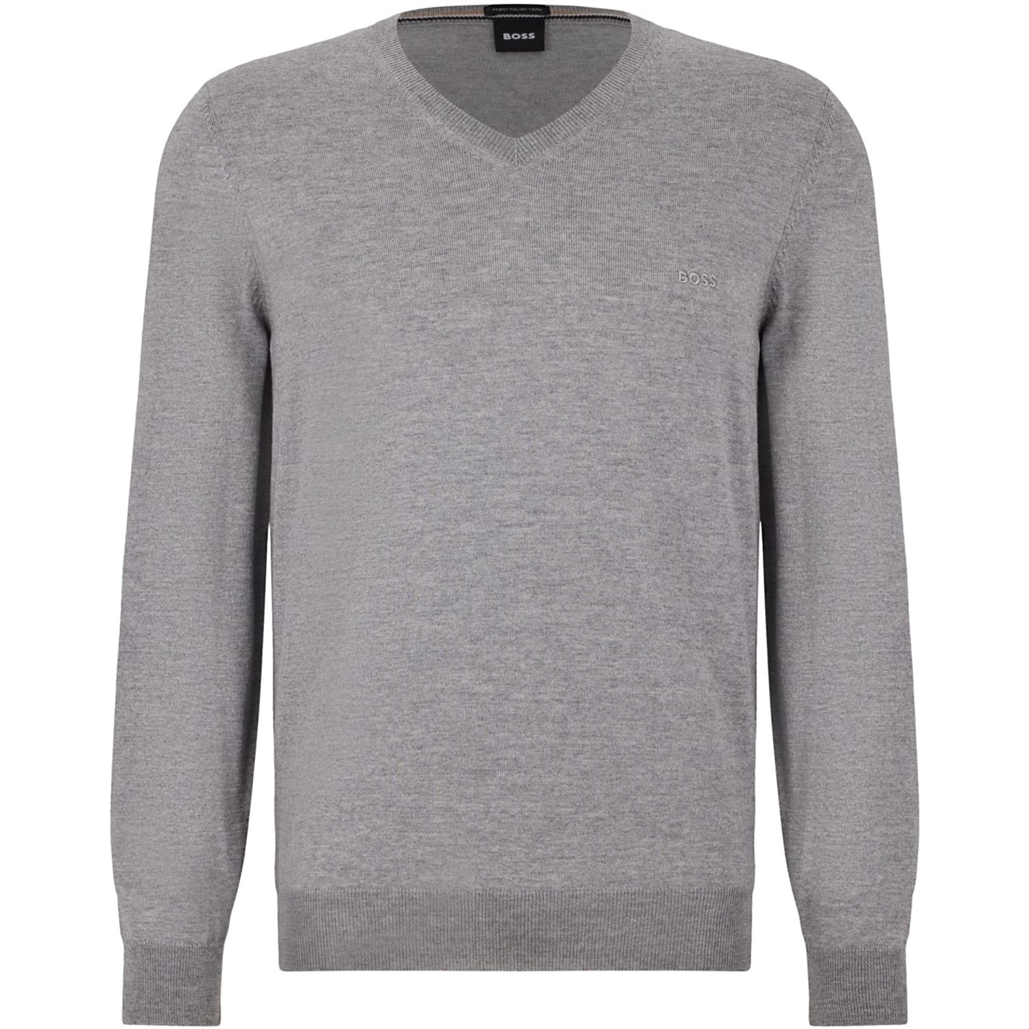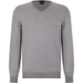 This Boss top features a solid pattern with a V-neck design and long sleeves. It offers a regular fit and is adorned with a subtle logo embellishment. The ribbed cuffs add a touch of detail to this elegant piece. -