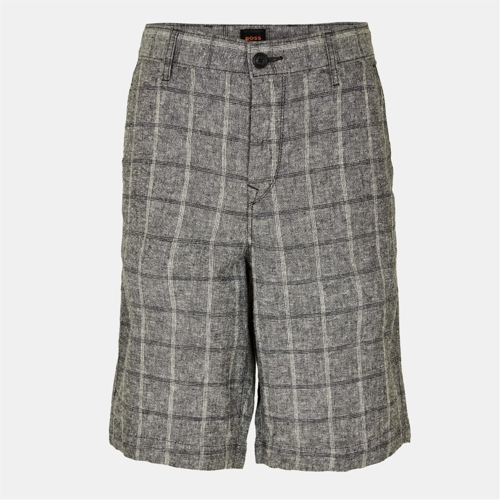These Boss chino shorts feature a classic plaid pattern, offering a stylish yet relaxed look. Designed with a button and zip fly closure, they ensure a secure fit. The subtle logo embellishment adds a touch of brand identity, making these shorts a versatile addition to any wardrobe. -