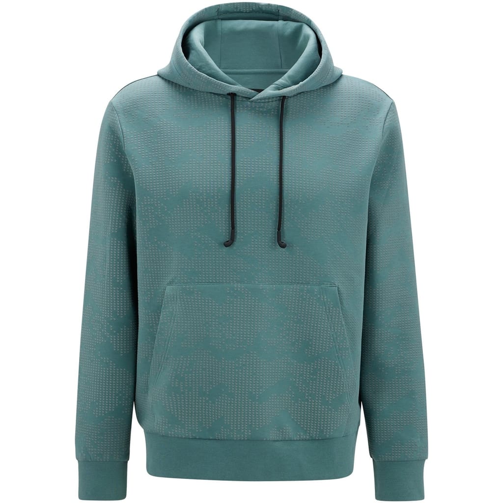 This Boss top features a hooded neck and long sleeves, offering a regular fit. The camo pattern adds a stylish touch, while the ribbed cuffs ensure comfort. A practical pocket enhances its casual appeal, making it a versatile addition to your wardrobe. -