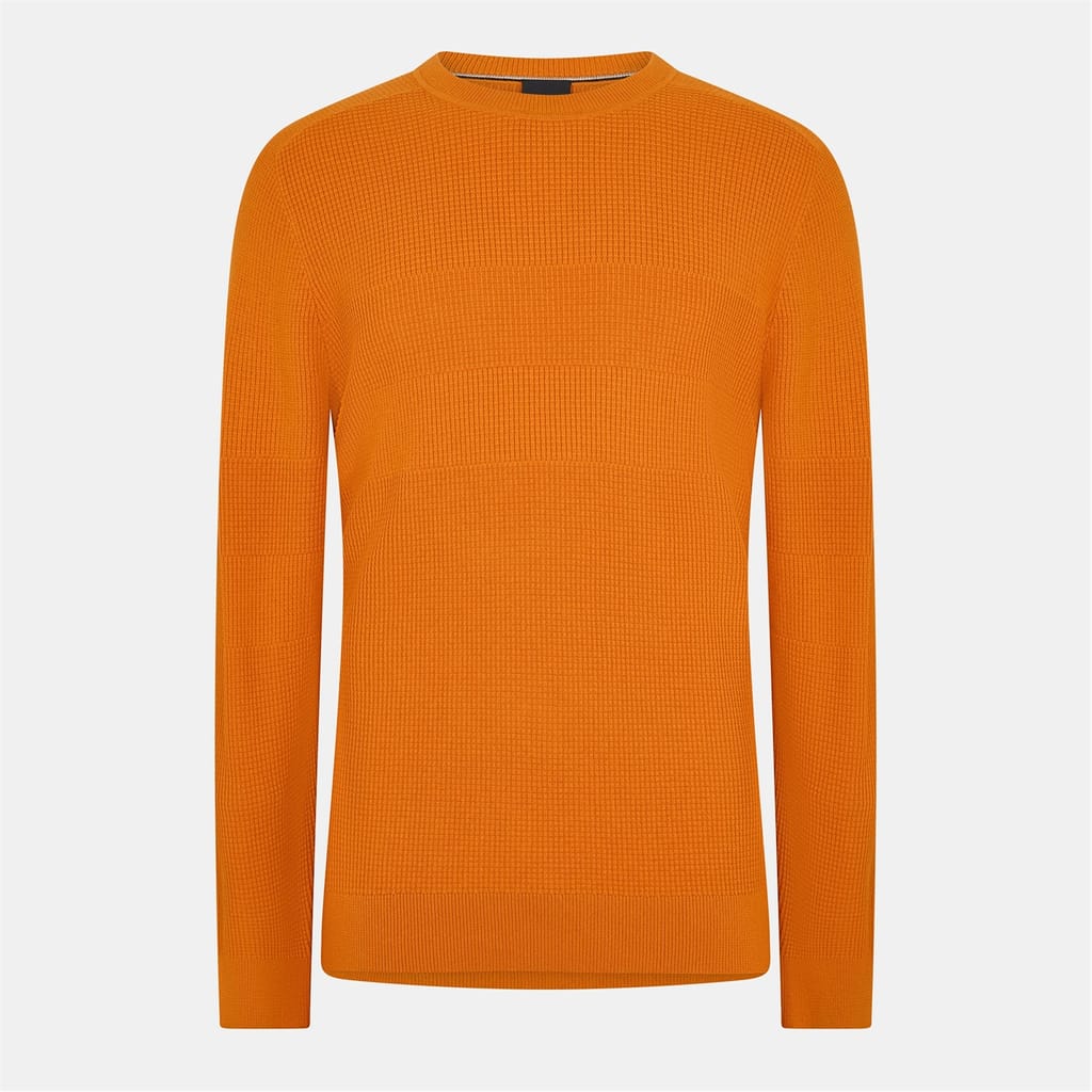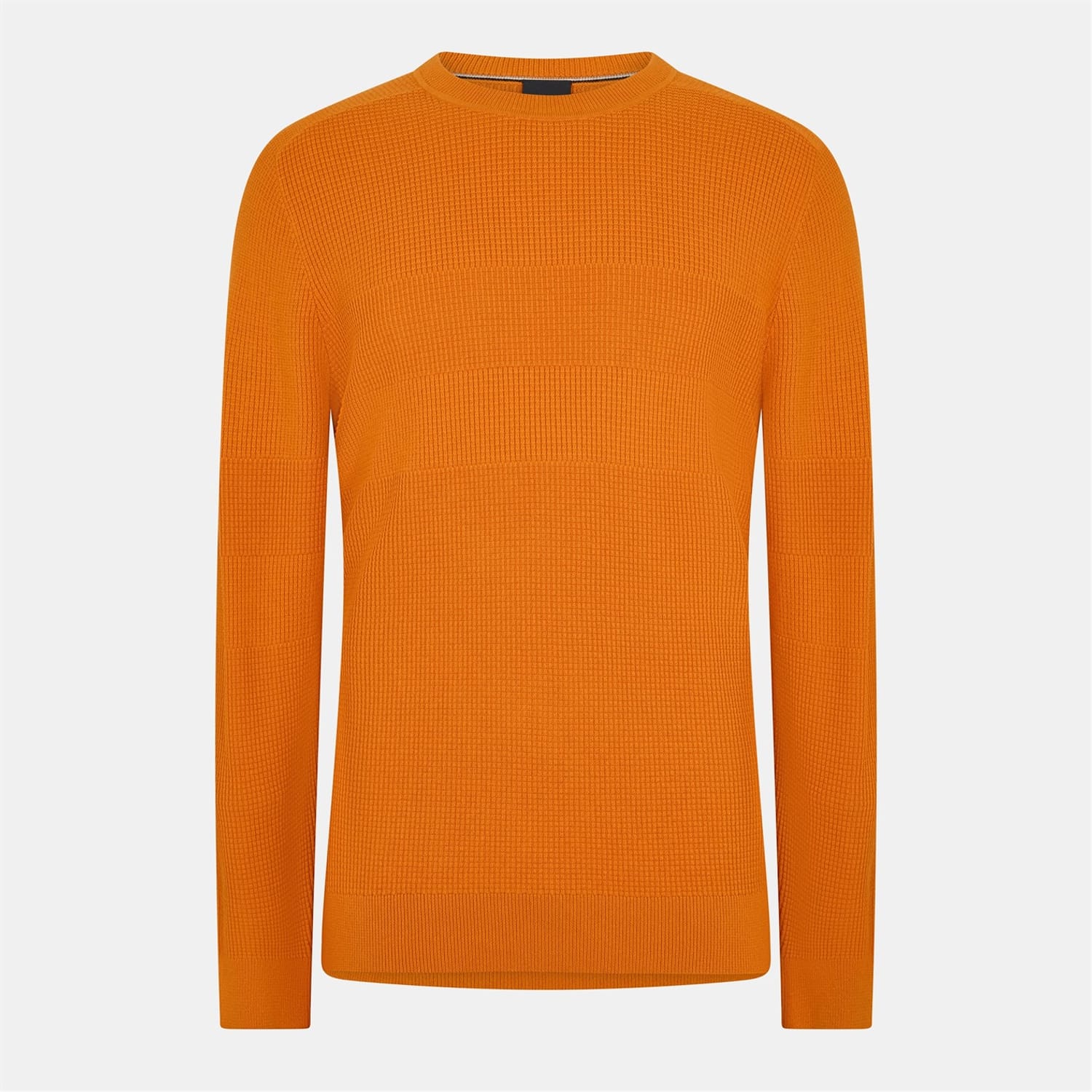 This Boss top features a solid pattern with long sleeves and a crew neck. Designed in a regular fit, it includes ribbed cuffs and a ribbed collar for added comfort and style. -