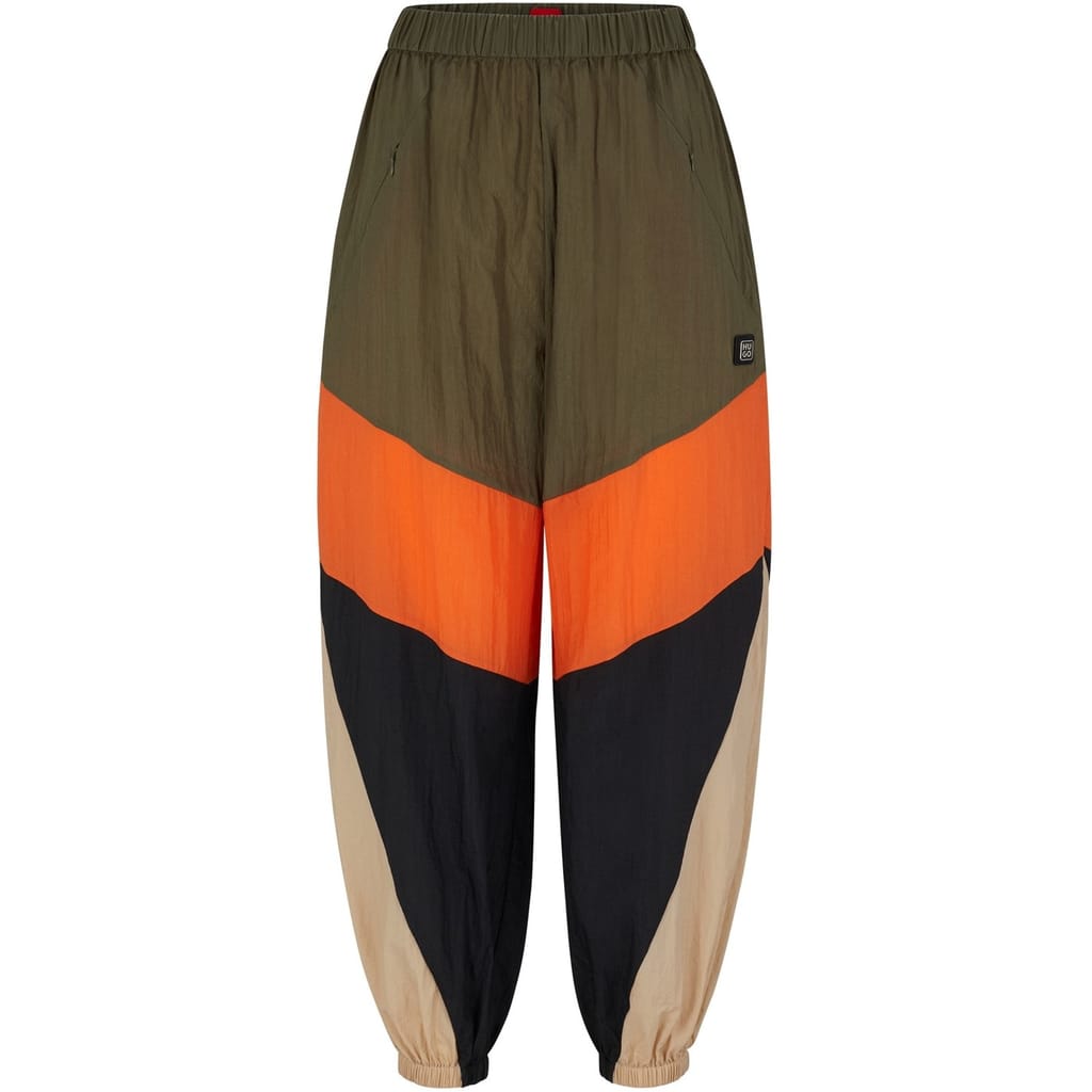 Elevate your casual wardrobe with Hugo joggers, featuring a stylish color block pattern. These joggers are adorned with a subtle logo embellishment, adding a touch of brand identity. Perfect for those seeking comfort and style in one package. -