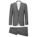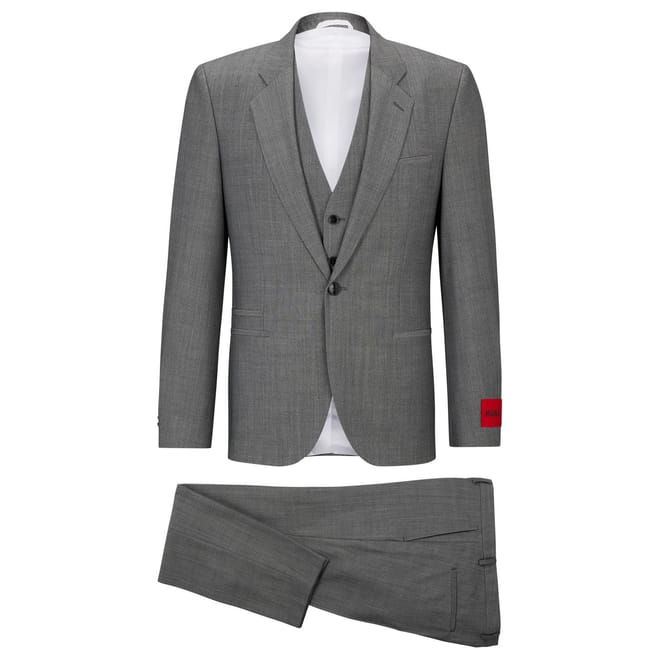 This Hugo suit jacket from the formal collection features a notch collar and a straight hem. Designed with a regular fit, it includes a button closure and practical pockets. The solid pattern adds a classic touch, making it a versatile addition to any wardrobe. -