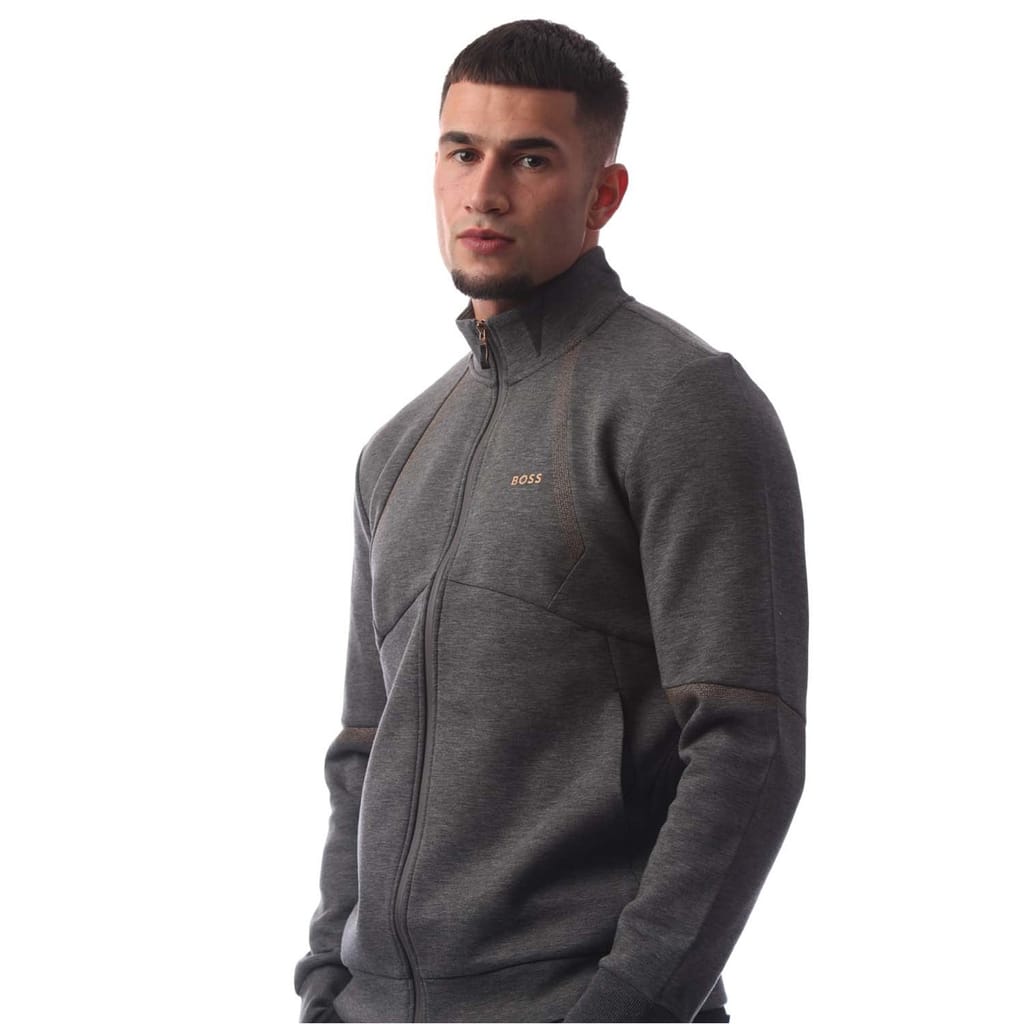 This Boss top from the outerwear collection features a regular fit with a zip neck and long sleeves. The solid pattern is complemented by a ribbed cuff, while the logo embellishment adds a touch of brand identity. The zipper closure ensures practicality and style. -