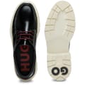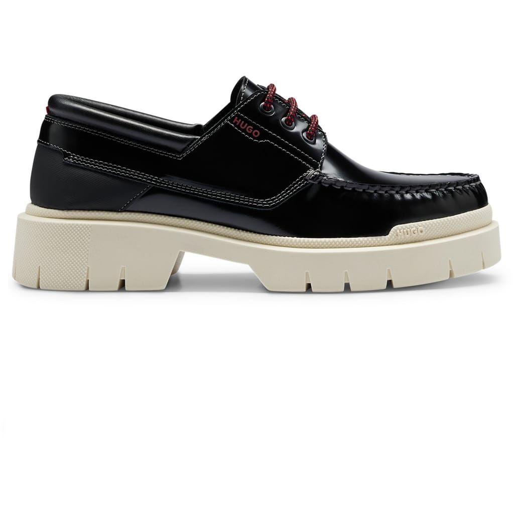Discover the refined elegance of Hugo loafers, designed in a classic boat shoe style. These shoes feature a distinctive moc toe, offering a sophisticated touch to your footwear collection. Perfect for those seeking a blend of style and comfort, these loafers are an ideal choice for any occasion. -