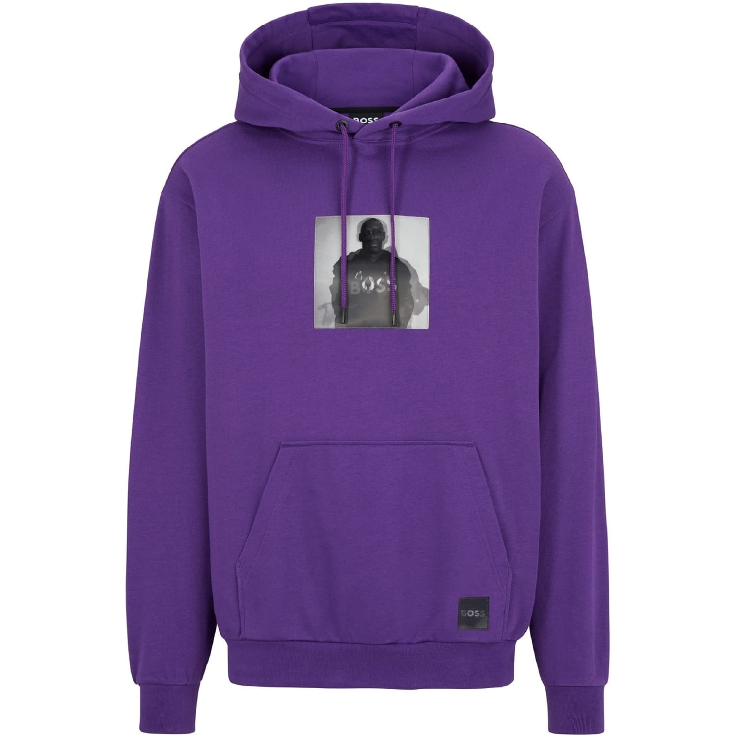This Boss top features a hooded neck and long sleeves, offering a regular fit for comfortable wear. The graphic print adds a stylish touch, while the ribbed cuffs provide a snug finish. -