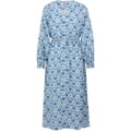 This Boss midi A-line dress features a charming floral pattern, perfect for adding a touch of elegance to your wardrobe. The dress is designed with a flattering V-neck and puff long sleeves, offering a sophisticated silhouette. A straight hemline and button closure complete the look, making it a versatile choice for various occasions. -