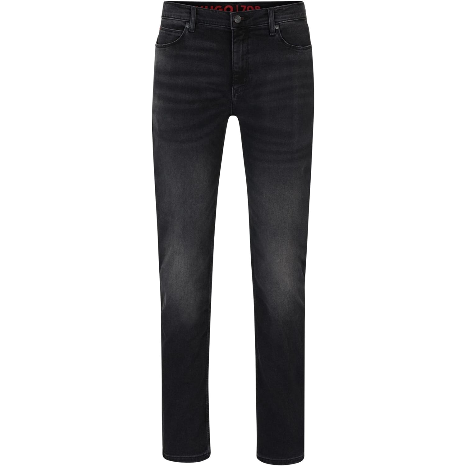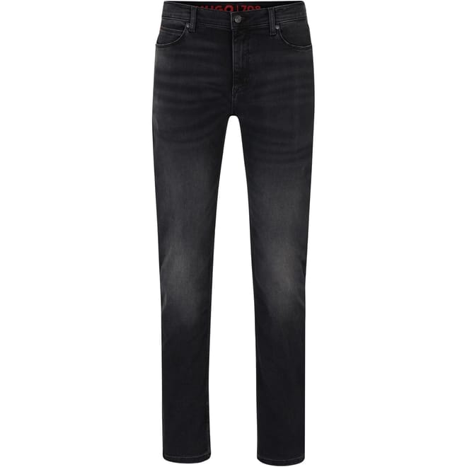 Hugo jeans feature a slim fit and a classic five-pocket design. The wash pattern adds a stylish touch, while the zip fly and front button closure ensure a secure fit. Embellished with a coin pocket, two back pockets, and a waist patch, these jeans offer both functionality and style. Belt loops provide versatility for accessorising. -
