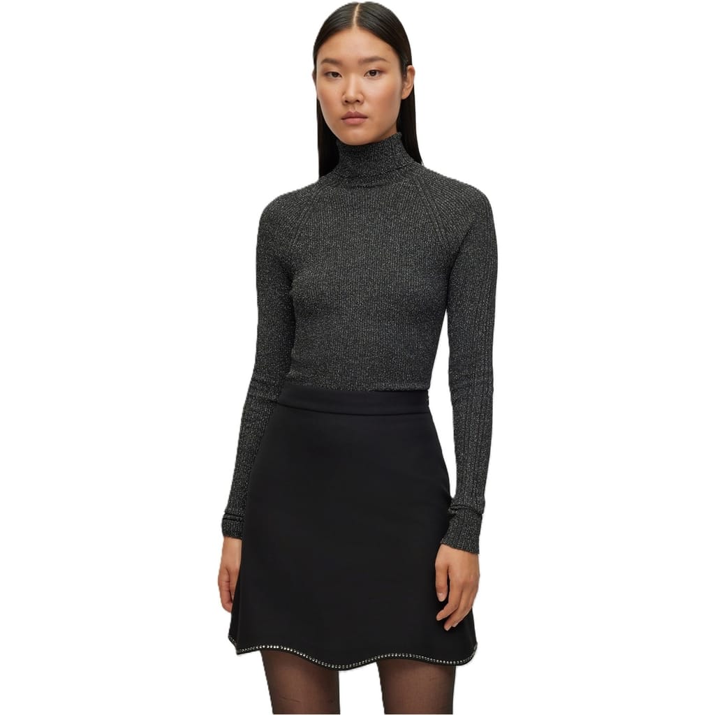 This Boss top features a turtleneck design with long raglan sleeves, offering a sleek and modern look. The slim fit enhances the silhouette, while the ribbed pattern adds texture. Finished with ribbed cuffs, this top is a stylish choice for any wardrobe. -