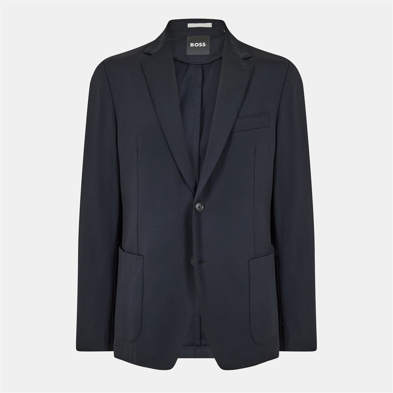 Elevate your professional wardrobe with this Boss blazer, part of the workwear collection. Featuring a notch collar and a button closure, this regular fit jacket is designed for a sleek silhouette. The solid pattern and straight hem add to its classic appeal, while practical pockets provide functionality. -