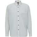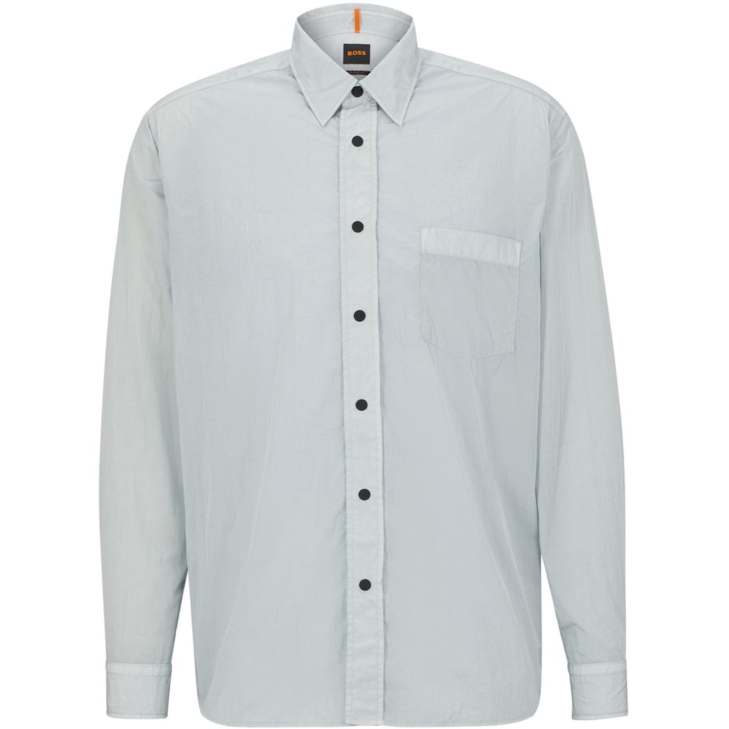 This Boss top features a solid pattern with long sleeves and a regular fit. It is designed with a button closure and a point collar, complemented by a barrel cuff. The top includes a practical chest pocket, adding a touch of functionality to its sleek design. -