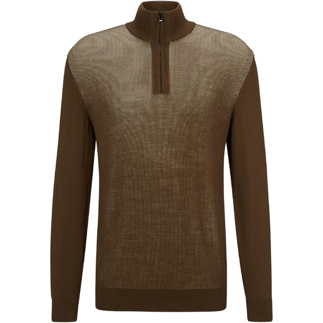 This Boss top features a sophisticated funnel neck with a convenient zipper closure. Crafted from knit material, it offers a regular fit and long sleeves with ribbed cuffs. The ribbed pattern adds a touch of texture, making it a versatile addition to your wardrobe. -