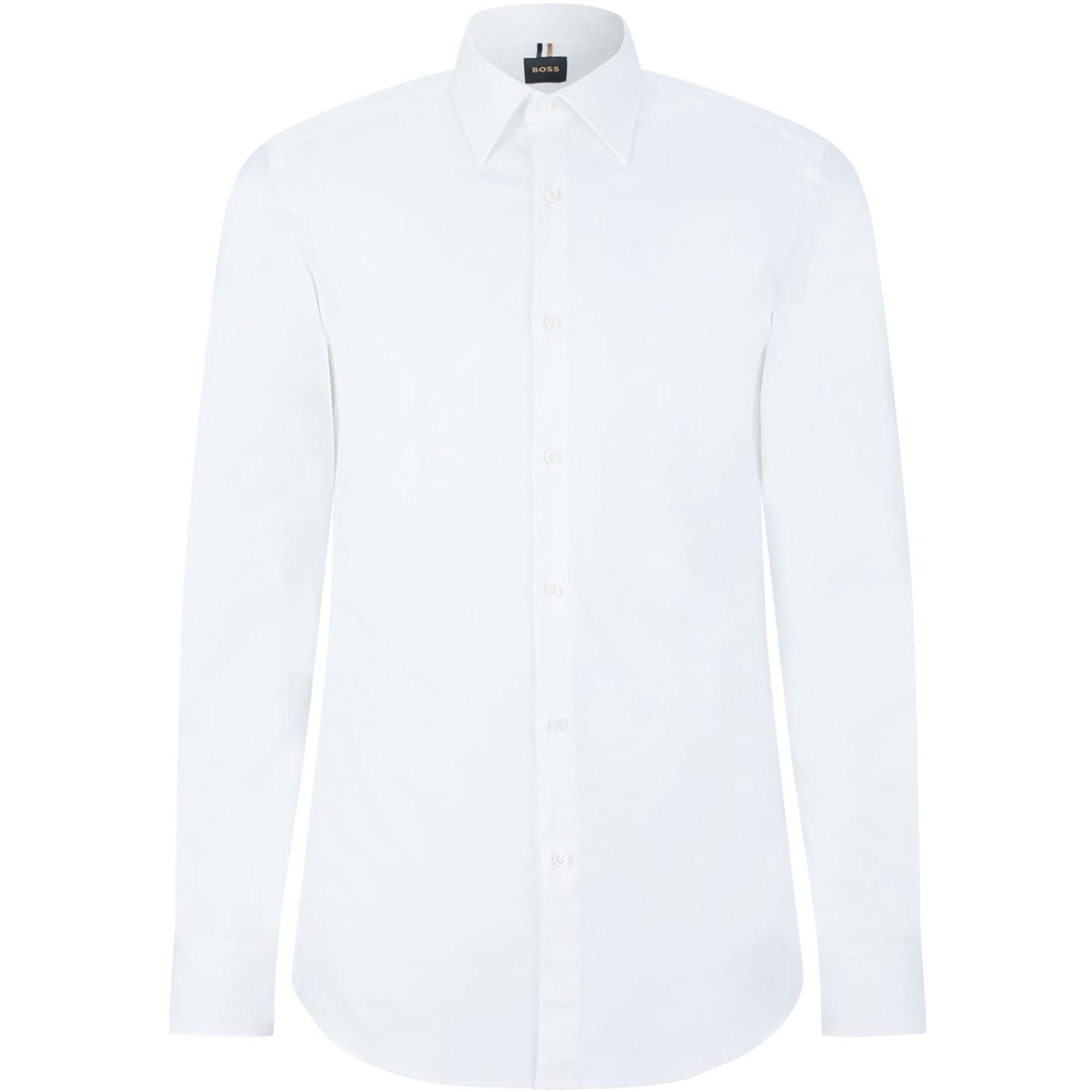 This Boss top features a solid pattern with long sleeves and a point collar. Designed with a button closure and barrel cuffs, it offers a regular fit for a classic look. -