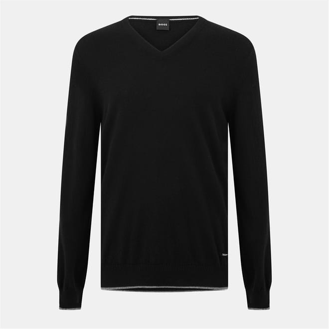 This Boss top features a solid pattern with a V-neck design and long sleeves. The regular fit ensures comfort, while the ribbed cuffs add a touch of style. A subtle logo embellishment completes the look, making it a versatile addition to your wardrobe. -