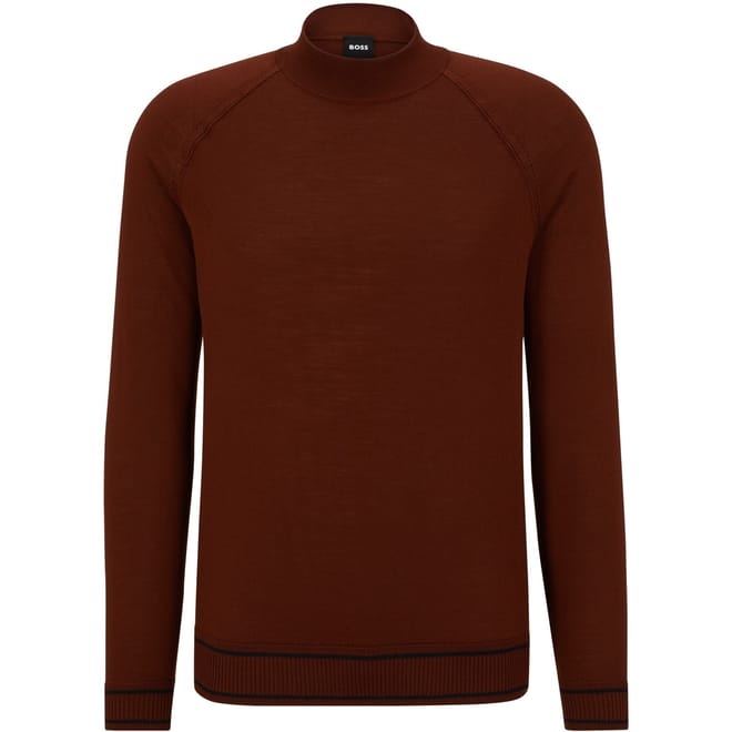 This Boss top features a mock neck and long raglan sleeves, offering a regular fit. The solid design is complemented by ribbed cuffs, providing a sleek and modern look. -