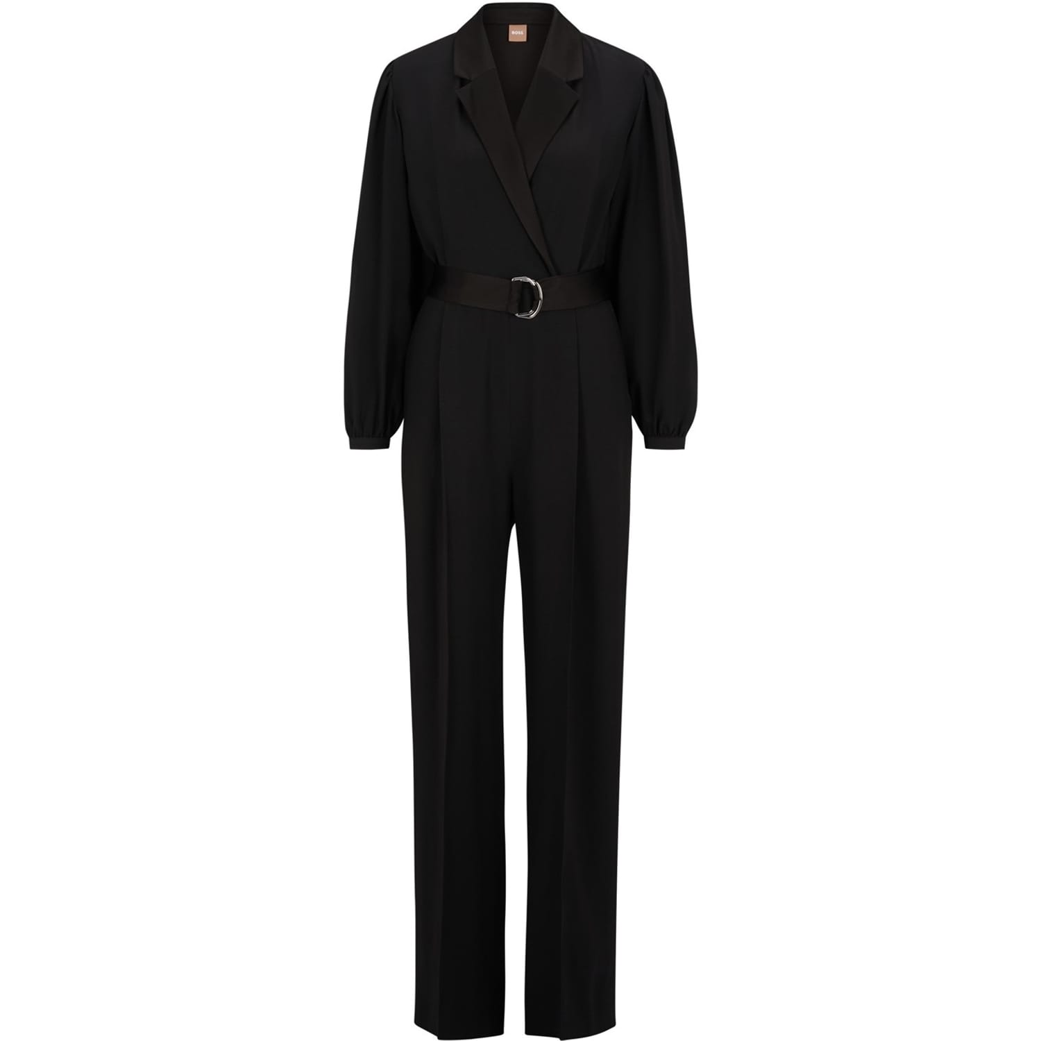 Discover the Boss wrap jumpsuit, featuring a collared neck and long plain sleeves. This regular fit piece is designed with a buckle closure, offering a sophisticated and modern look. -