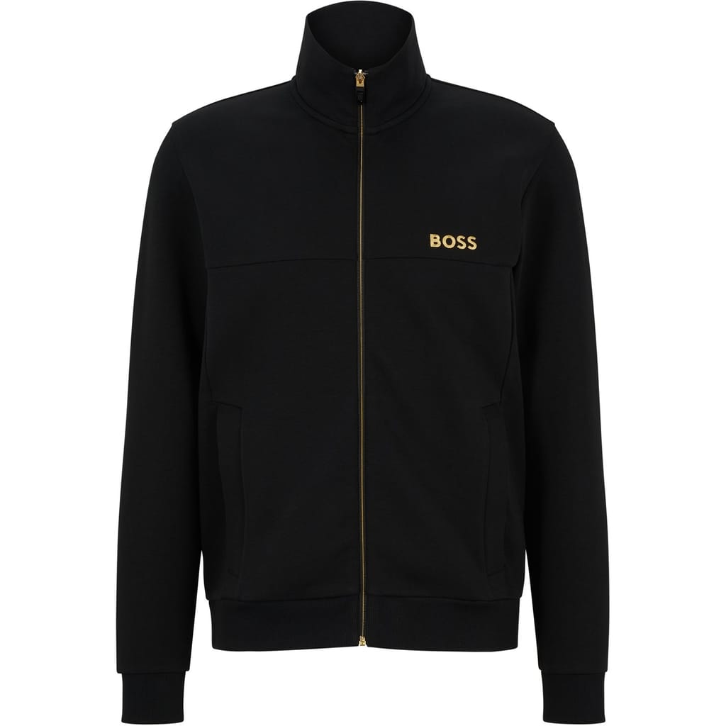 This Boss top features a funnel neck and long sleeves, offering a regular fit for casual wear. The solid pattern is complemented by a front zipper closure and ribbed cuffs. A subtle logo embellishment adds a touch of brand identity to this versatile piece. -