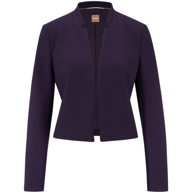 This Boss blazer from the workwear collection is a sophisticated choice for professional settings. Featuring a solid pattern and a regular fit, it offers a sleek silhouette. The open front design and straight hem add to its modern appeal. Crafted for comfort, this short-length blazer is an essential addition to your wardrobe. -