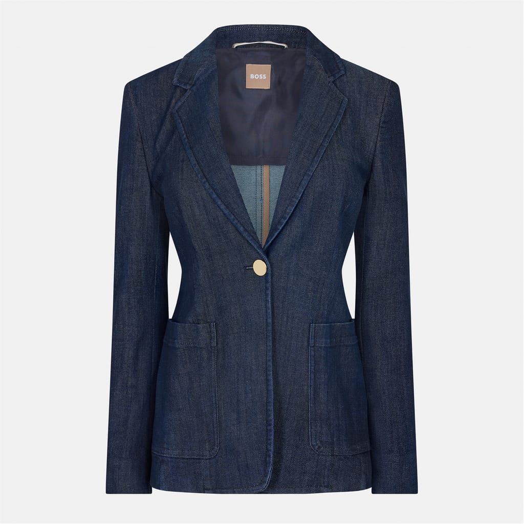 This Boss blazer from the workwear collection is a sophisticated choice for professional settings. Featuring a lapel collar and a button closure, it offers a regular fit with a straight hem. The solid pattern and pocket embellishments add to its classic appeal, making it a versatile addition to any wardrobe. -