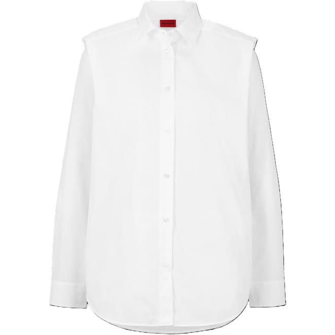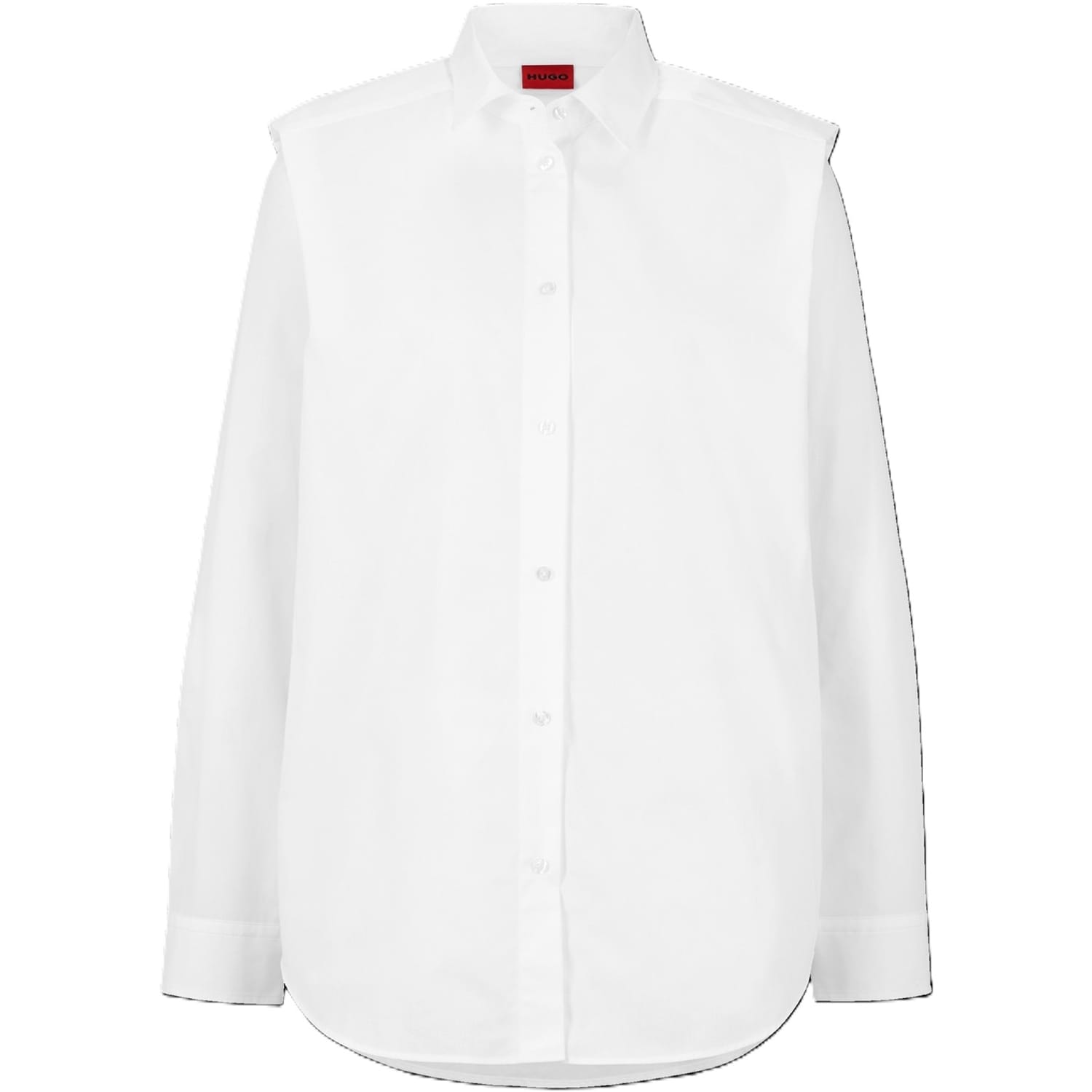 This Hugo top is a formal essential, featuring a solid pattern and a shirt collar. Designed with long sleeves and a regular fit, it offers a classic look. The button closure and barrel cuffs add a touch of sophistication. A subtle logo embellishment completes the design, making it a versatile addition to any wardrobe. -