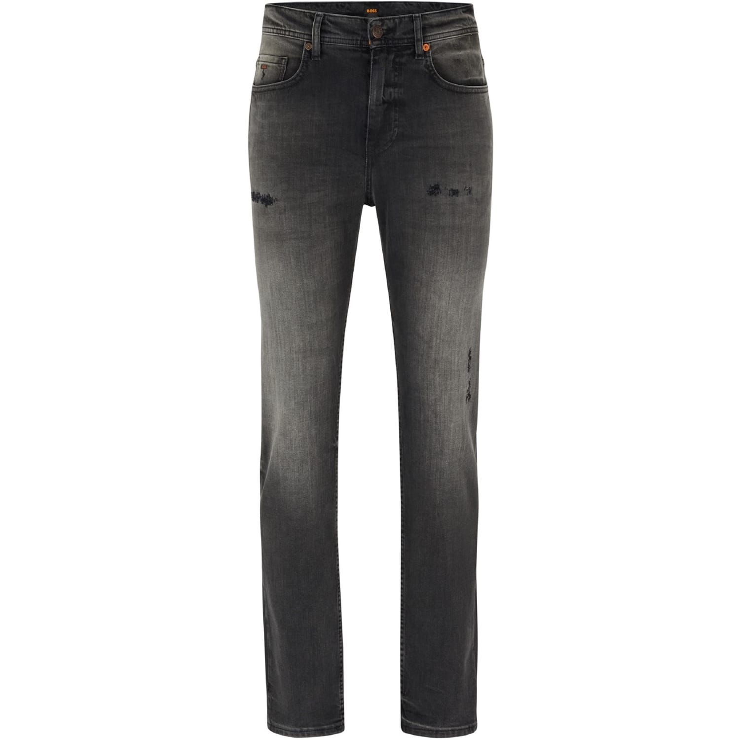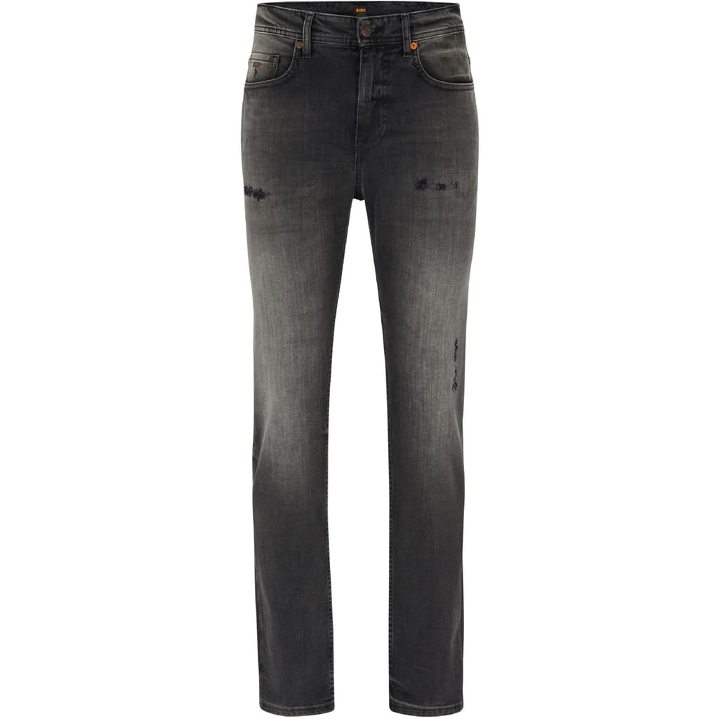 Discover the Boss distressed jeans, featuring a stylish slim fit. These jeans come with a convenient zipper and button closure, ensuring a secure fit. The iconic logo embellishment adds a touch of brand identity, making these jeans a standout choice for any wardrobe. -