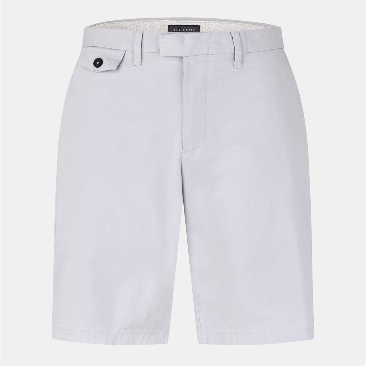 Ted Baker chino shorts offer a refined casual style with a solid pattern. Featuring a zip fly and button closure, these shorts are designed for comfort and practicality. Embellished with pockets and a discreet logo, they provide a sleek and functional look, perfect for a relaxed yet polished appearance. -