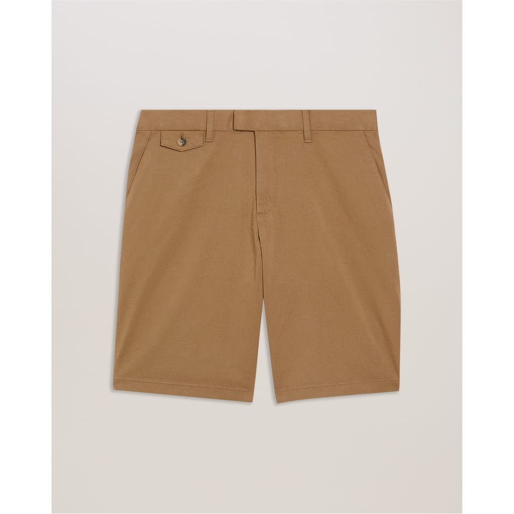 Ted Baker chino shorts offer a refined casual style with a solid pattern. Featuring a zip fly and button closure, these shorts are designed for comfort and practicality. The addition of pockets enhances their functionality, making them a versatile choice for various occasions. -
