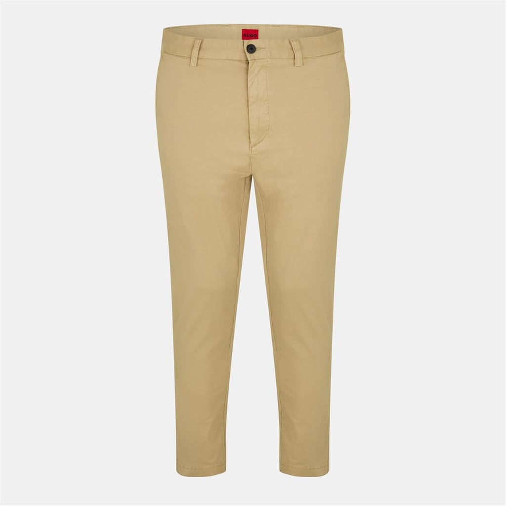Hugo chinos offer a regular fit with a zip fly and button closure. These pants feature a subtle logo embellishment, adding a touch of brand identity to the design. Ideal for those seeking a blend of style and comfort, these chinos are a versatile addition to any wardrobe. -