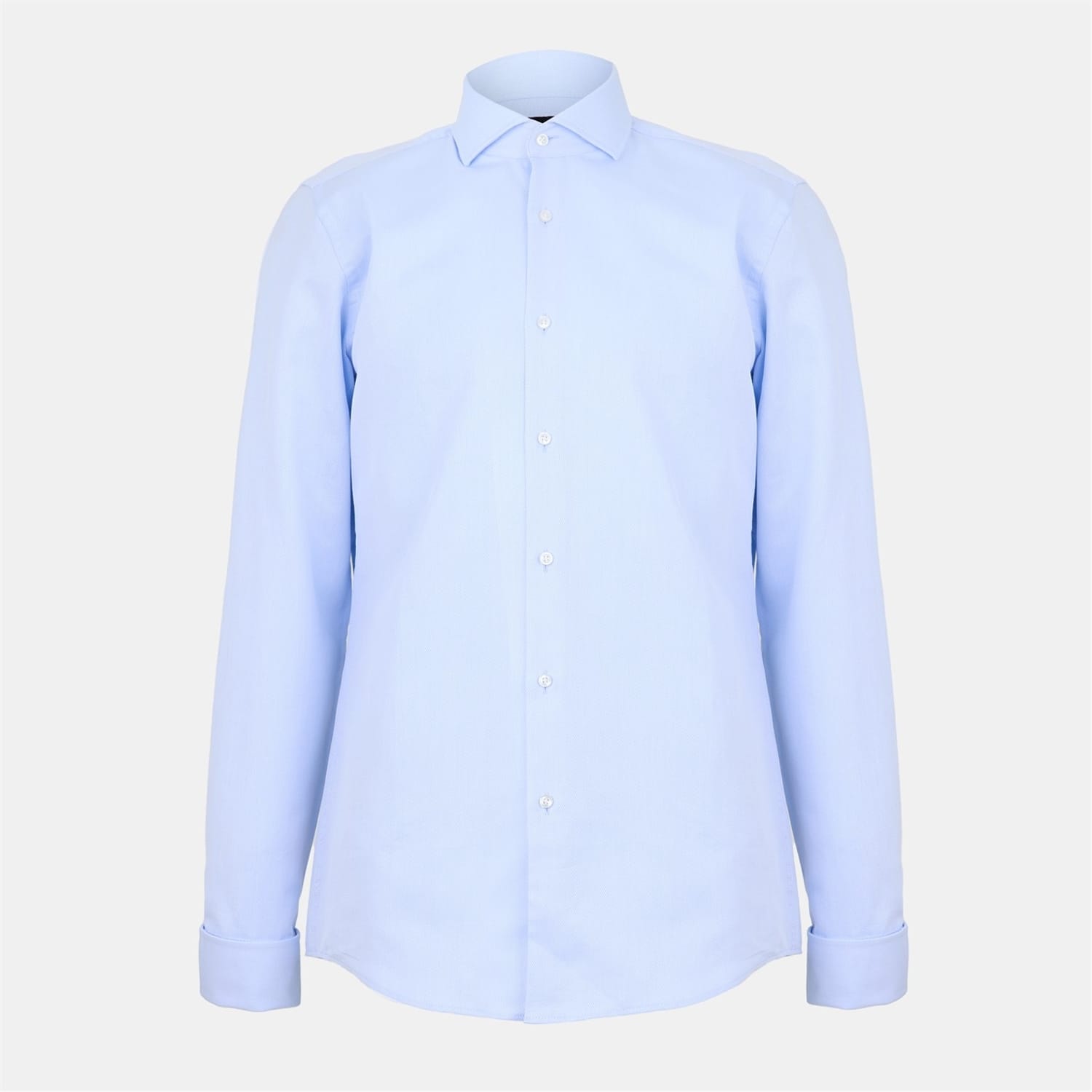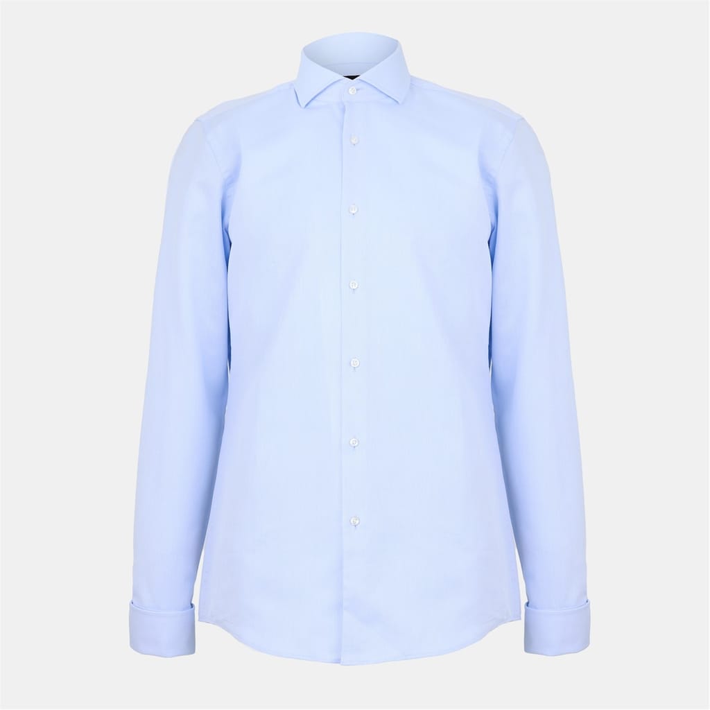This Boss top features a solid pattern with long sleeves and a spread collar. Designed with a button closure and barrel cuffs, it offers a regular fit for a classic look. -