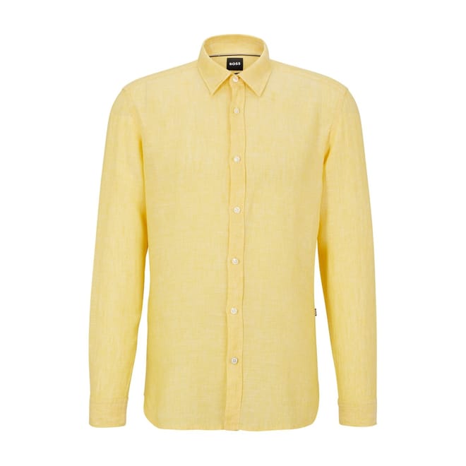The Boss Liam top features a solid pattern with a classic shirt collar and long sleeves. Designed with a button closure, this regular fit piece offers a timeless look. -