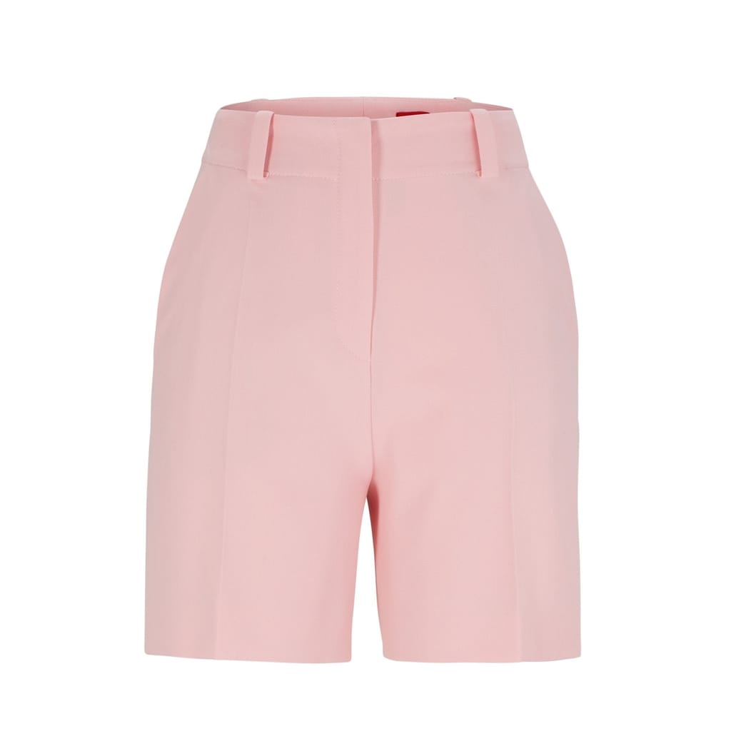 Hugo dress shorts feature a solid pattern and are designed with a zip fly closure. These shorts include practical pockets, offering both style and functionality. -