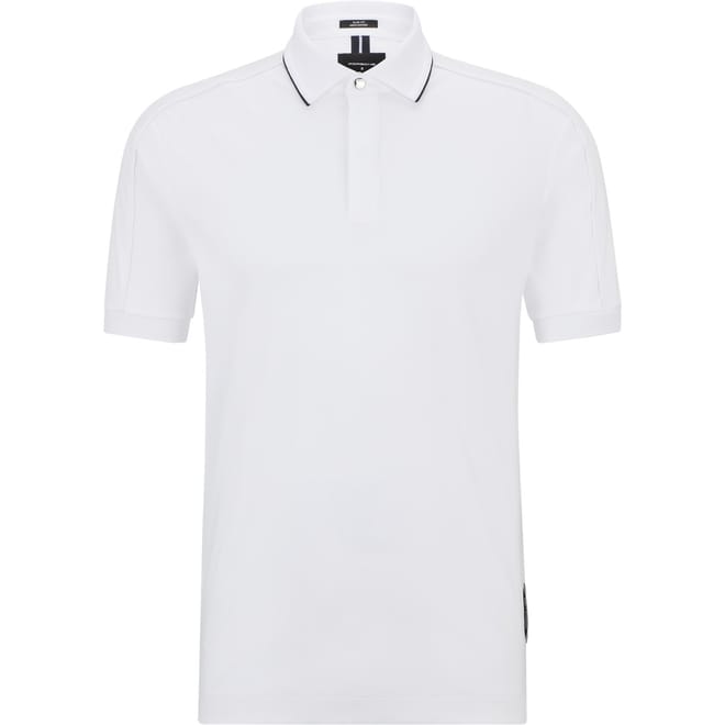 This Boss top features a classic polo collar and short sleeves, offering a regular fit. The solid pattern adds a timeless touch, making it a versatile addition to any wardrobe. -
