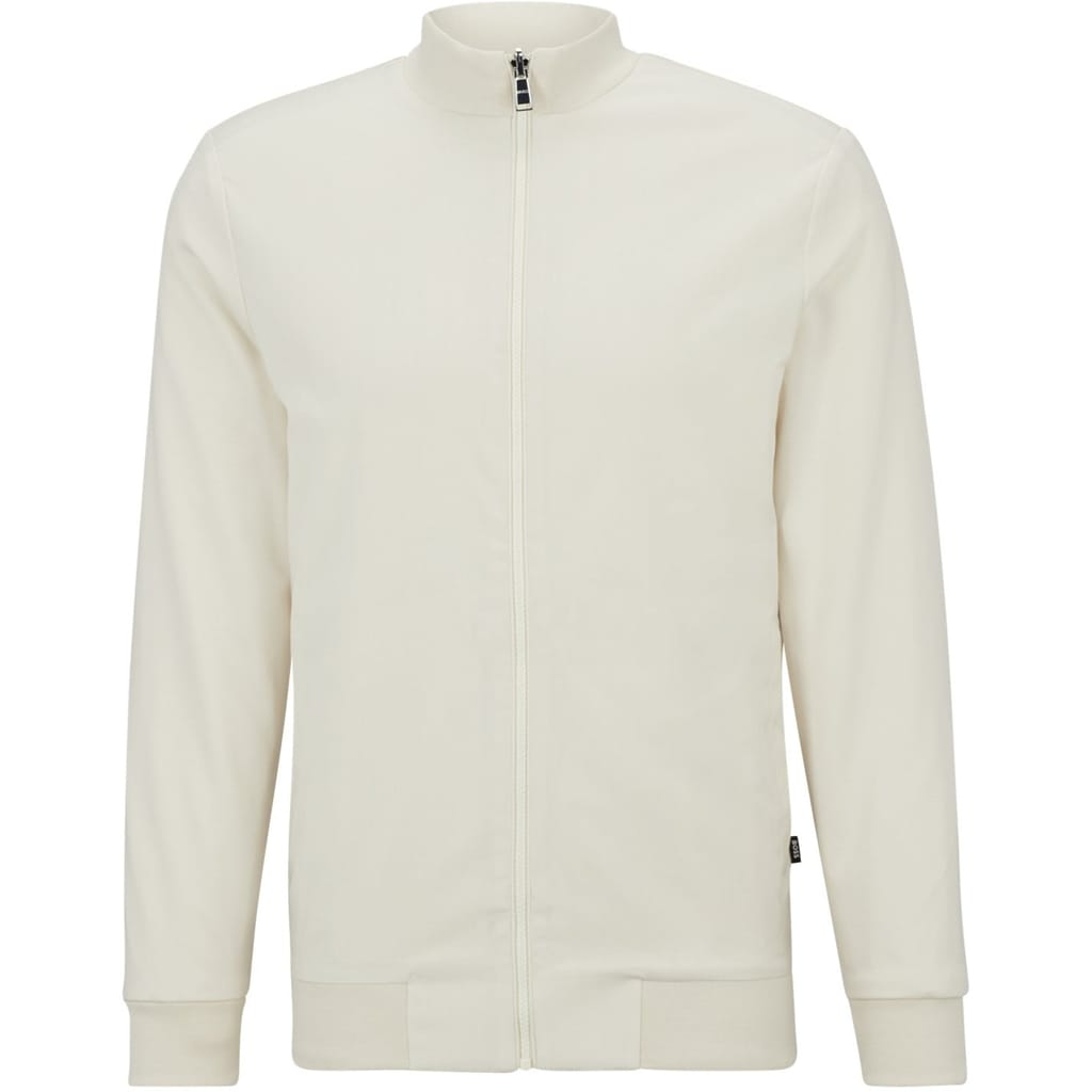 This Boss top features a mid-weight design with a solid pattern, offering a regular fit. It comes with a full zipper closure and a zip neck, complemented by a bomber collar. The long sleeves are finished with ribbed cuffs, providing a sleek and comfortable look. -