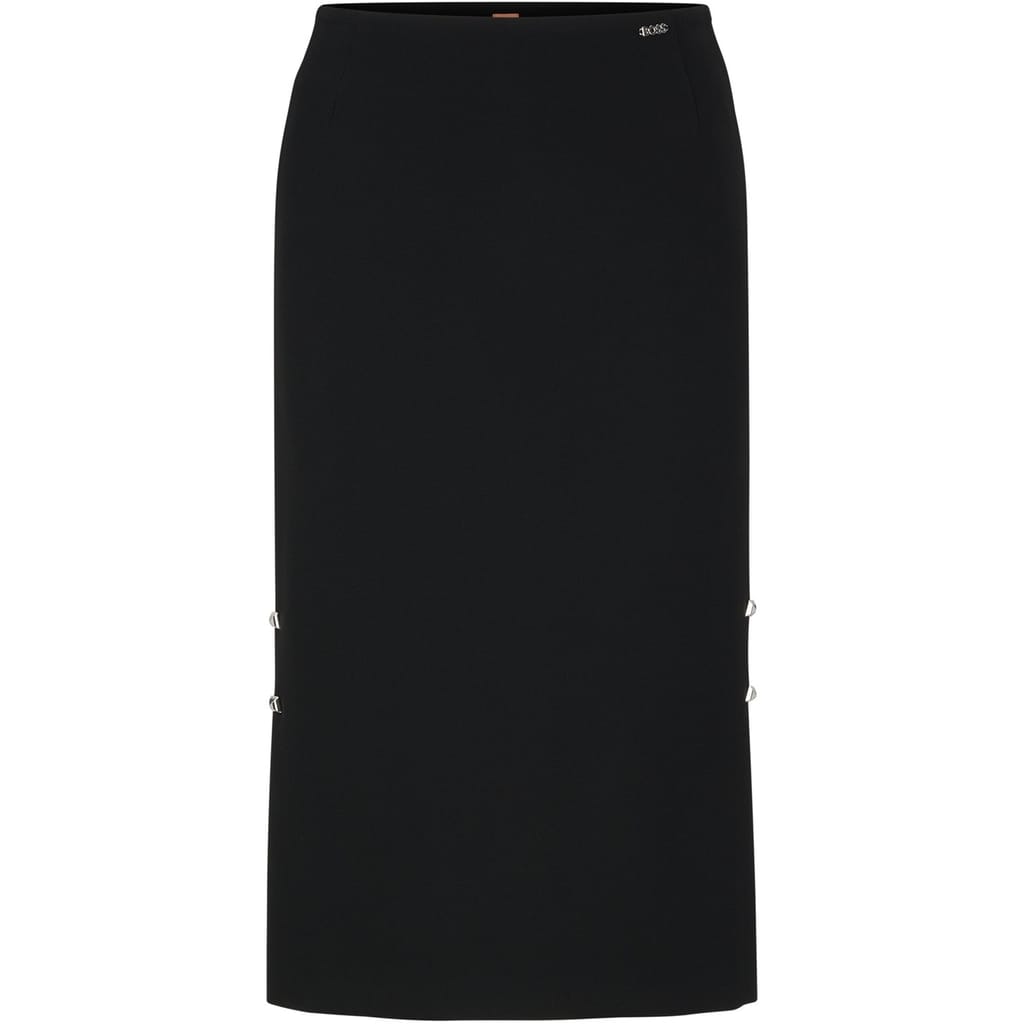This Boss midi pencil skirt is a perfect addition to your casual collection. Designed with a slim fit, it offers a sleek silhouette. The button closure adds a touch of sophistication, making it a versatile piece for various occasions. -