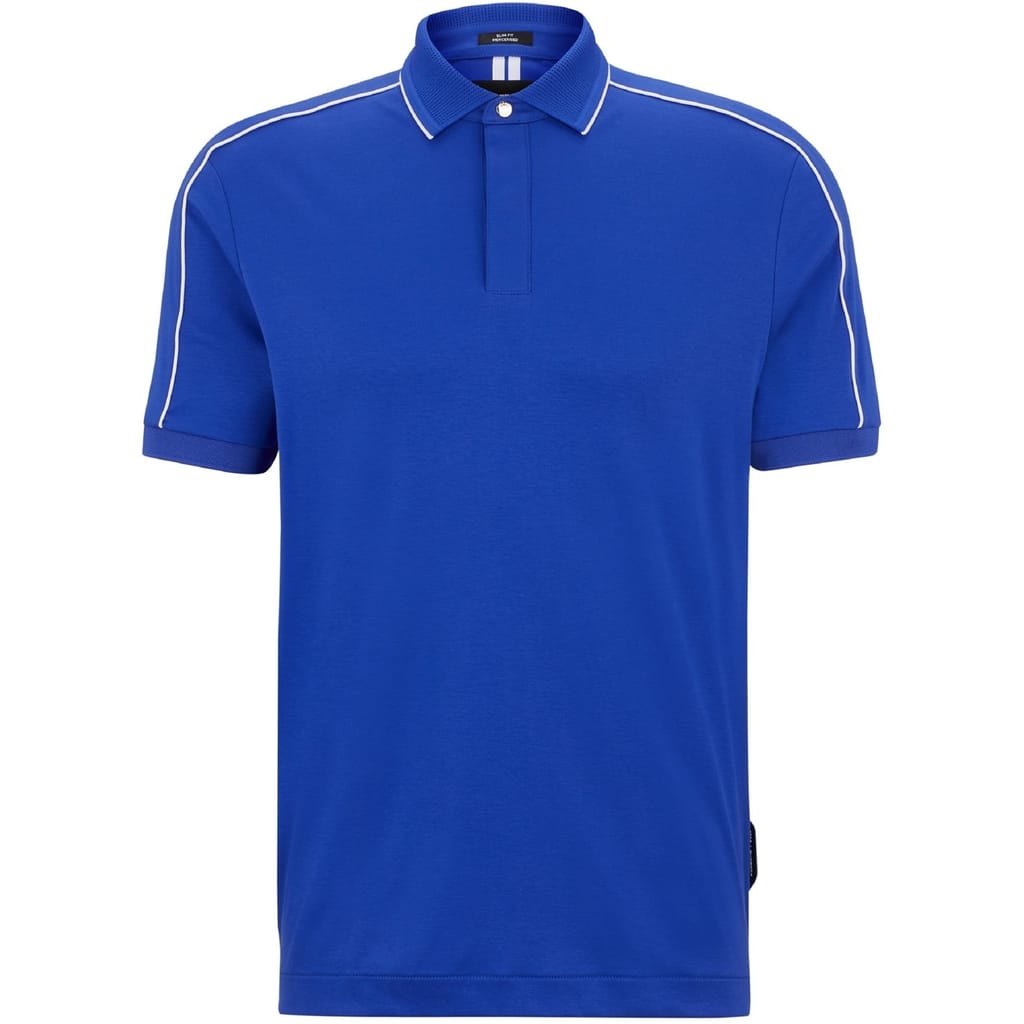 This Boss top features a classic polo collar and a solid pattern, offering a timeless look. Designed with short sleeves and a button closure, it ensures comfort and style. The regular fit provides a relaxed yet polished appearance, making it a versatile addition to any wardrobe. -