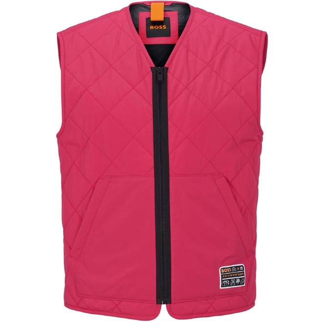 This Boss gilet features a solid pattern and a regular fit, offering a sleek and versatile addition to your wardrobe. The straight hem and zipper closure provide a clean and functional design, perfect for layering. Crafted with attention to detail, this piece embodies the brand's commitment to quality and style. -
